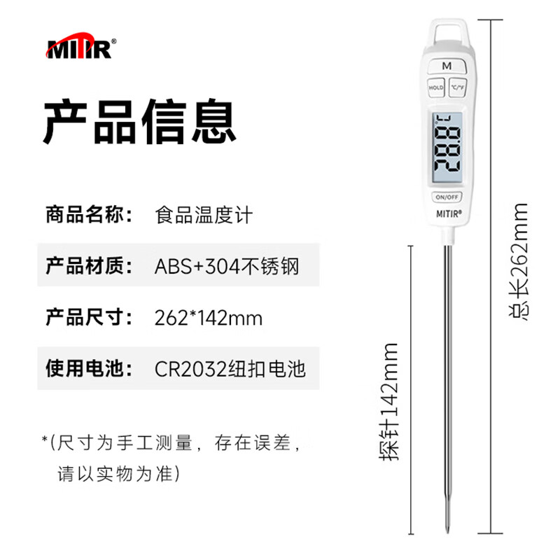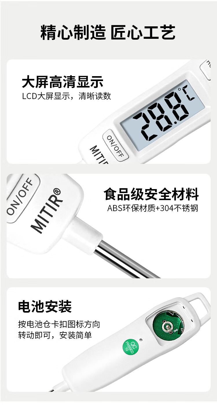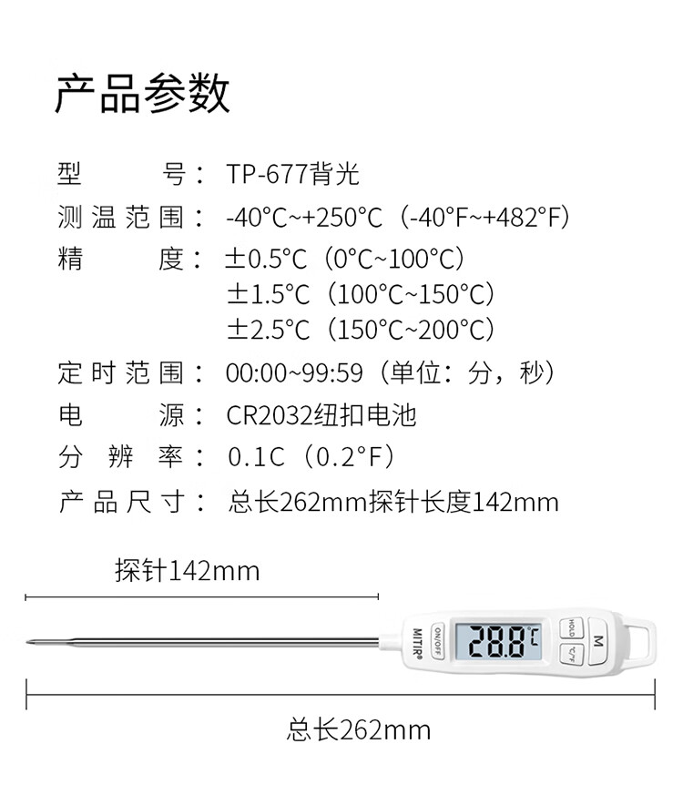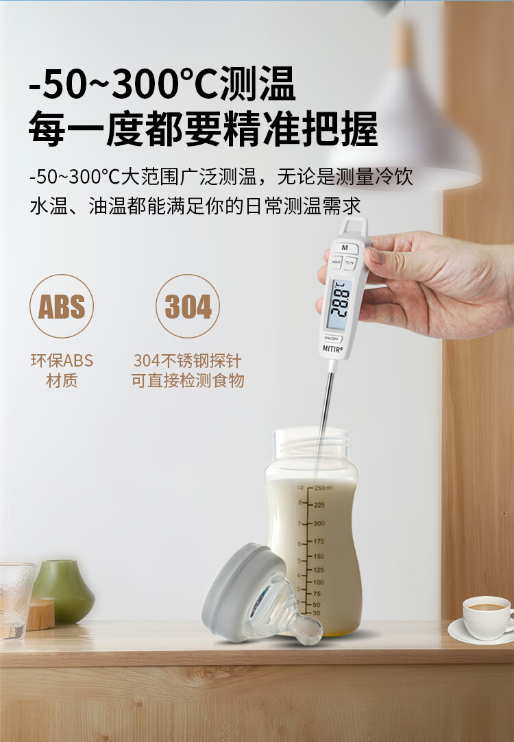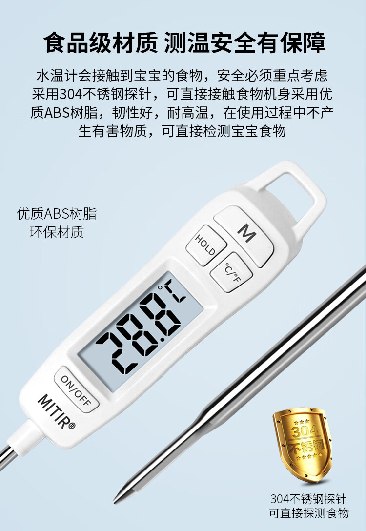 • 商品名称:MITIR食品液体温度计厨房油温计婴儿奶温计洗澡水温计TP677背光款 TP677-背光款/个