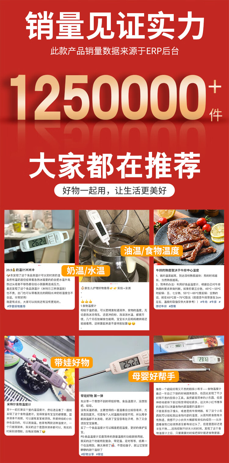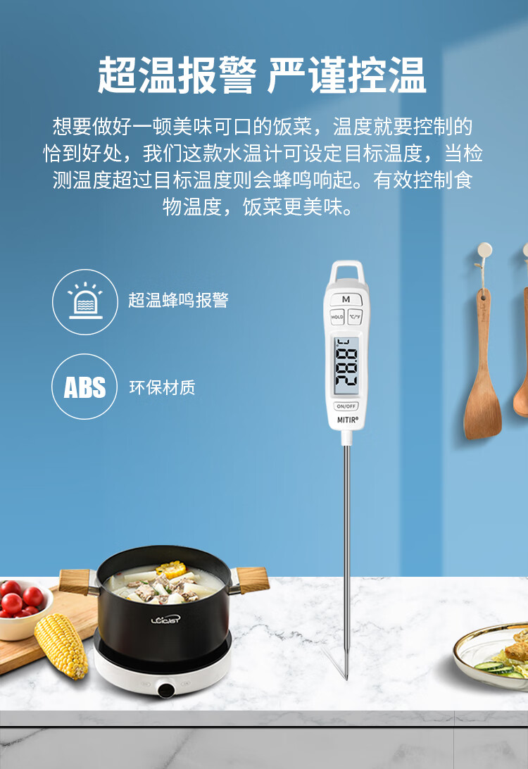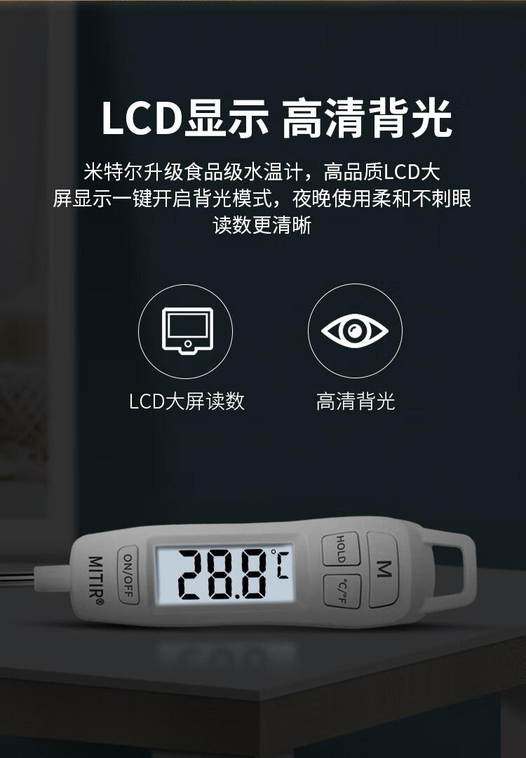 商品名称: MITIR食品液体温度计厨房油温计婴儿奶温计洗澡水温计TP677背光款 TP677-背光款/个
