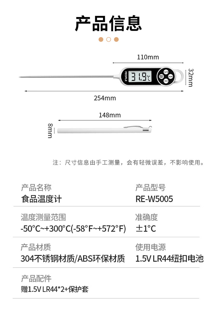 商品名称: 人民家用室内温湿度计厨房测油温计婴儿测奶温计水温温度计RE-W5005 W-5005/个