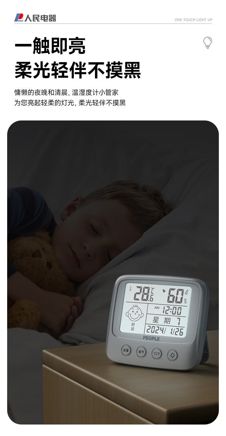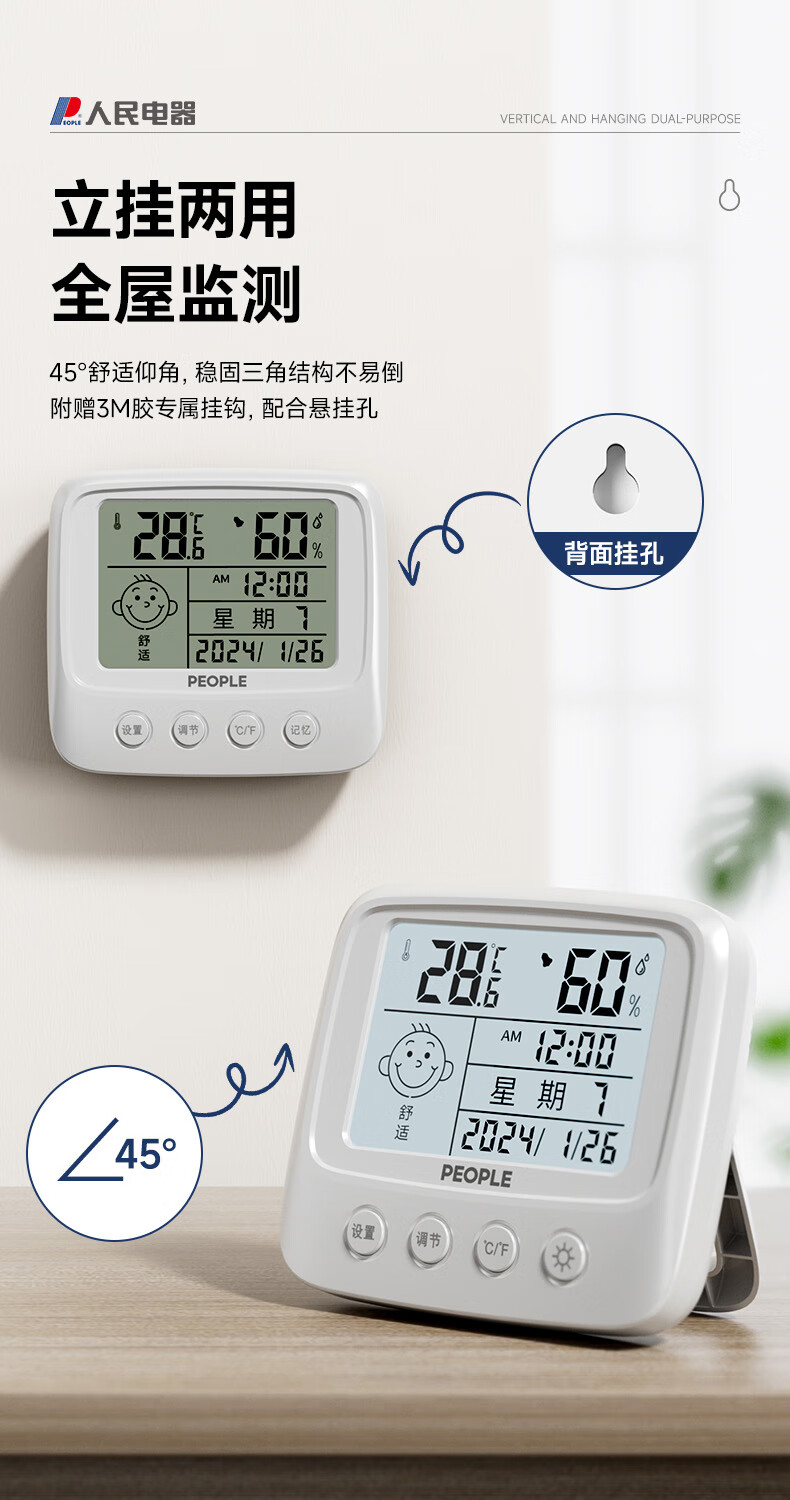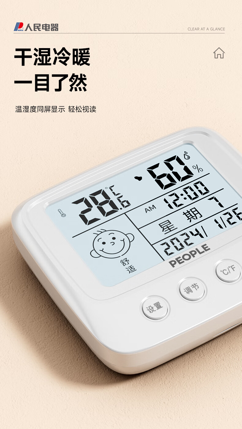 • 商品名称:人民家用室内温湿度计室内客厅婴儿房背光高精准灵敏温度计RE-W5017S RE-W5017S/个