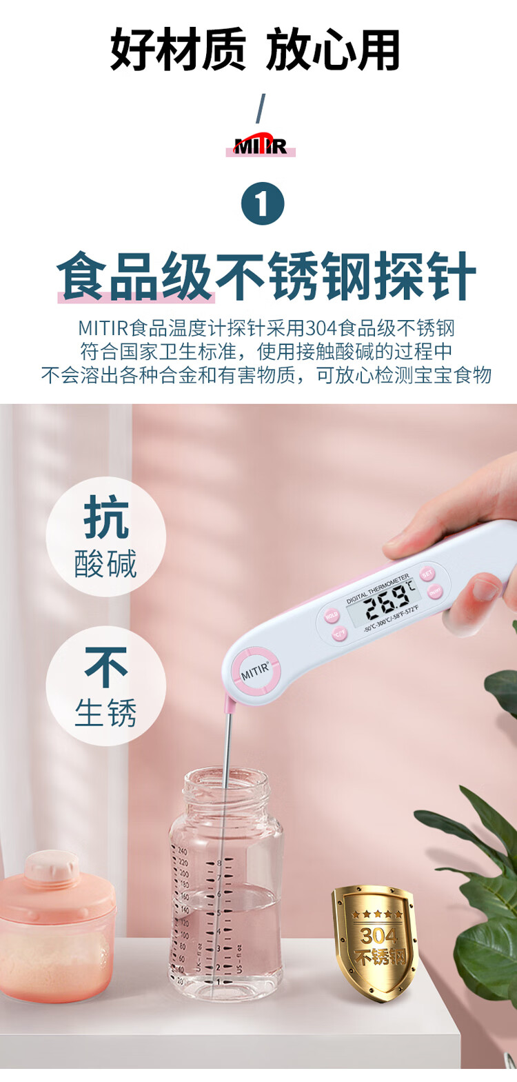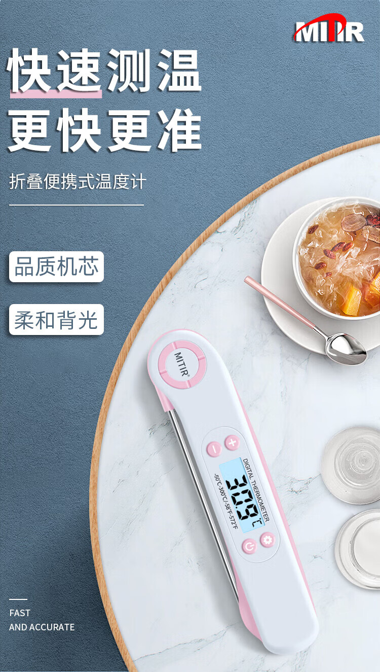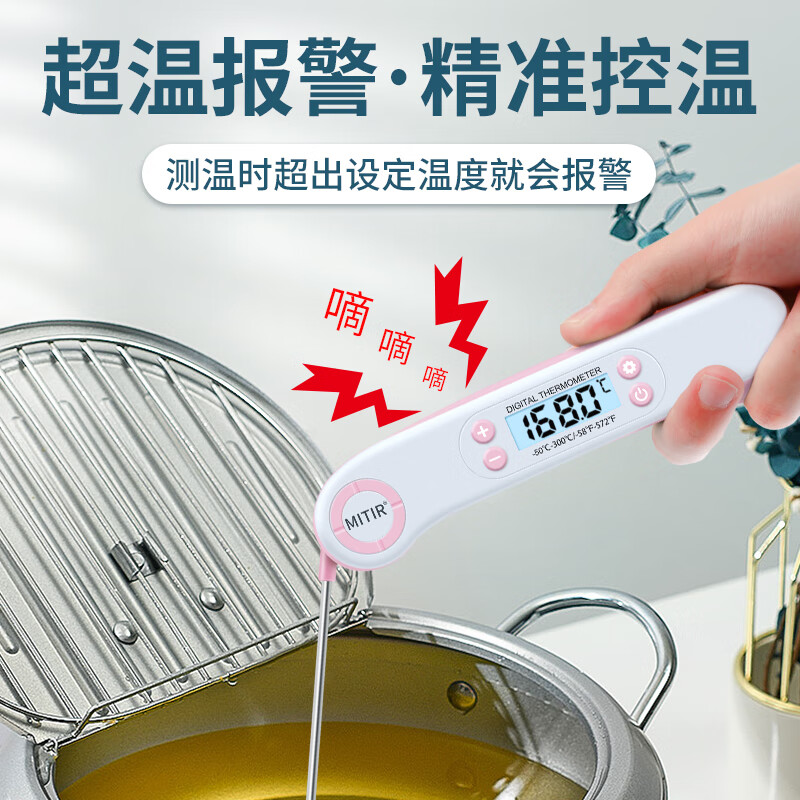 MITIR食品温度计室内厨房油温计婴儿奶温计水温计电子温度计粉色背光款 TP666粉色背光款/件