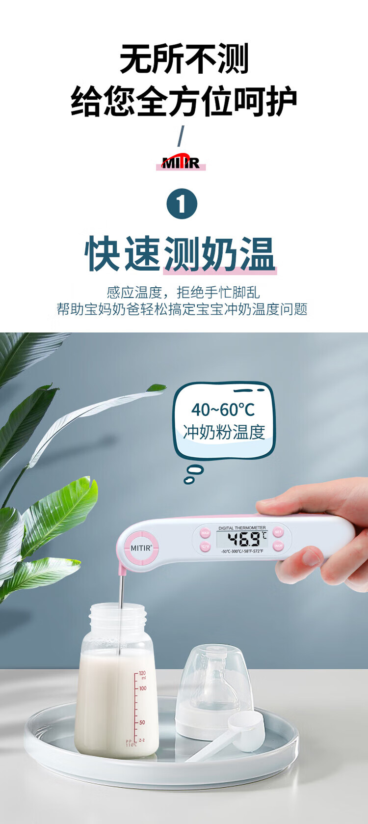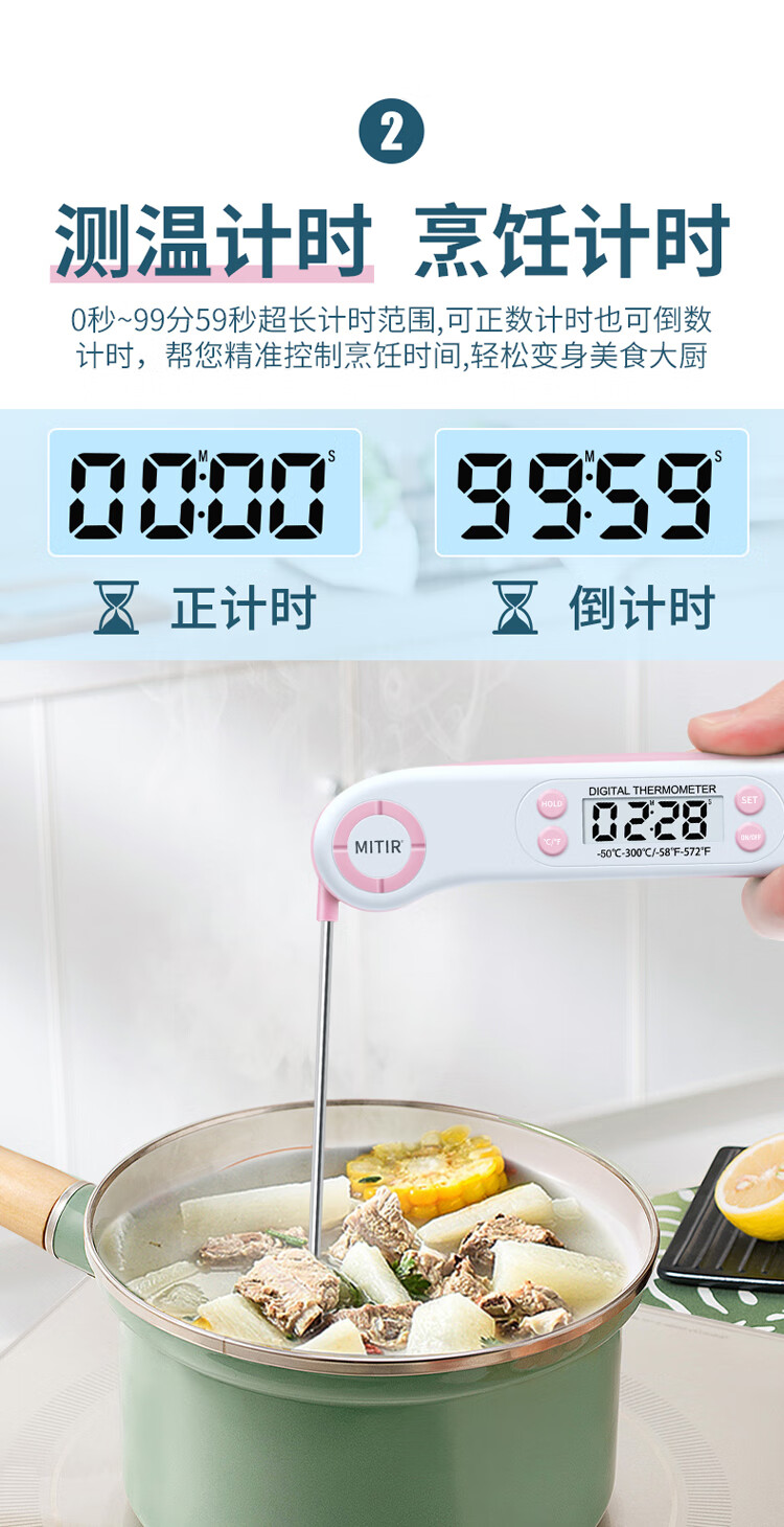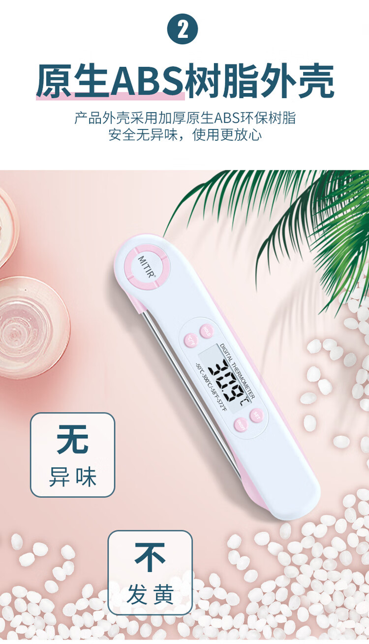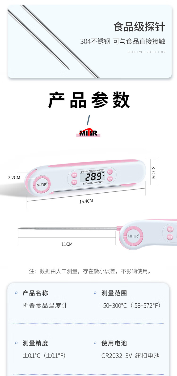 • 商品名称:MITIR食品温度计室内厨房油温计婴儿奶温计水温计电子温度计粉色背光款 TP666粉色背光款/件