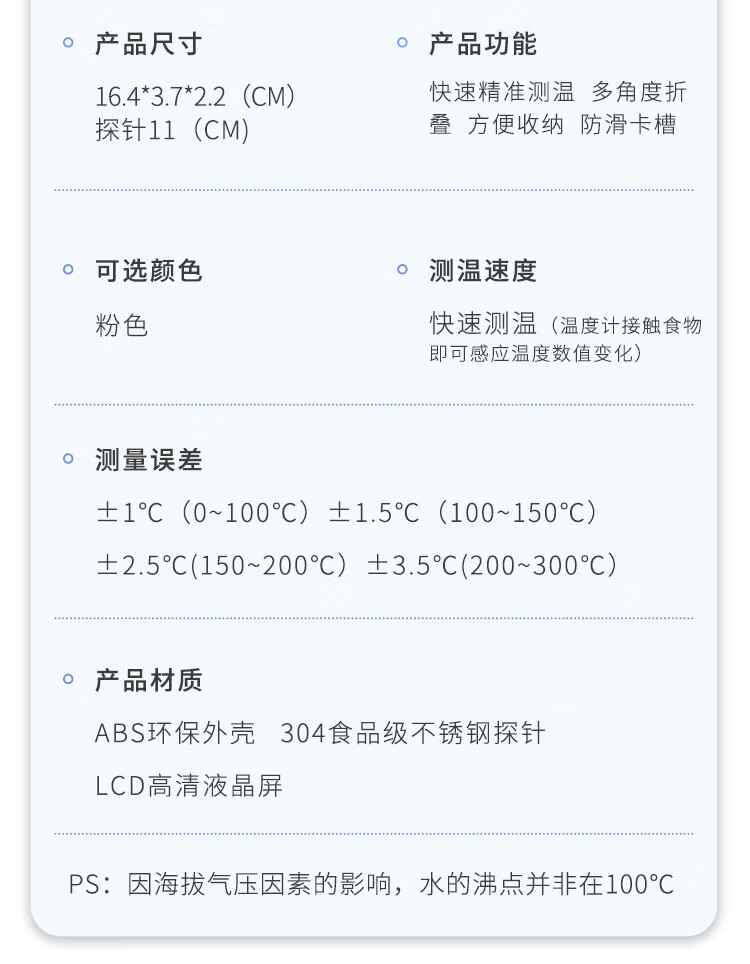 商品名称: MITIR食品温度计室内厨房油温计婴儿奶温计水温计电子温度计粉色背光款 TP666粉色背光款/件