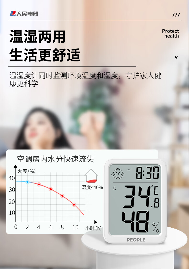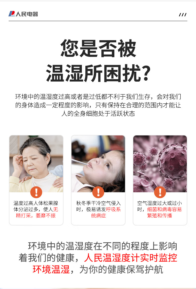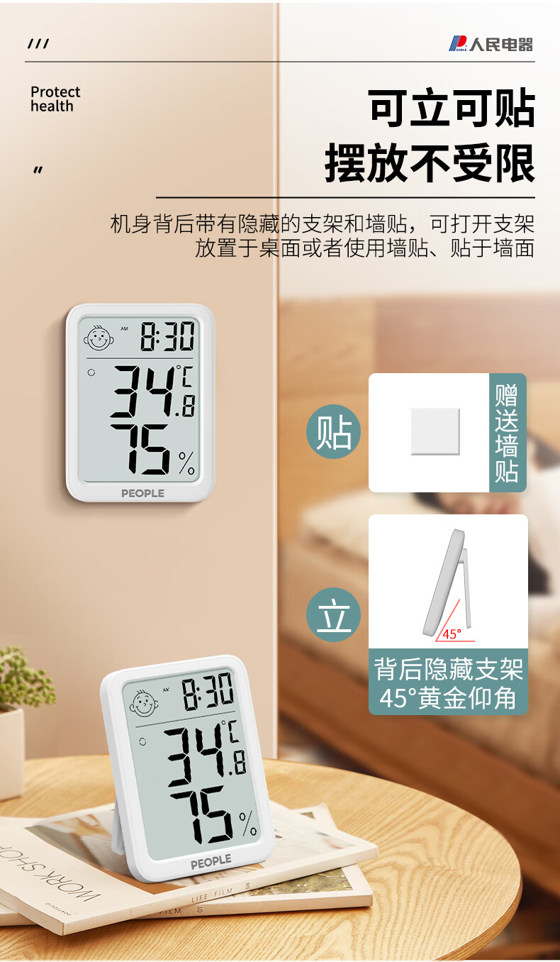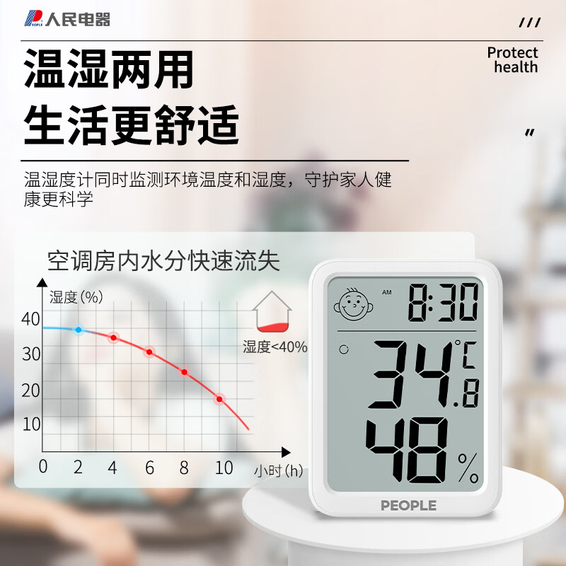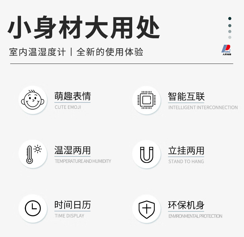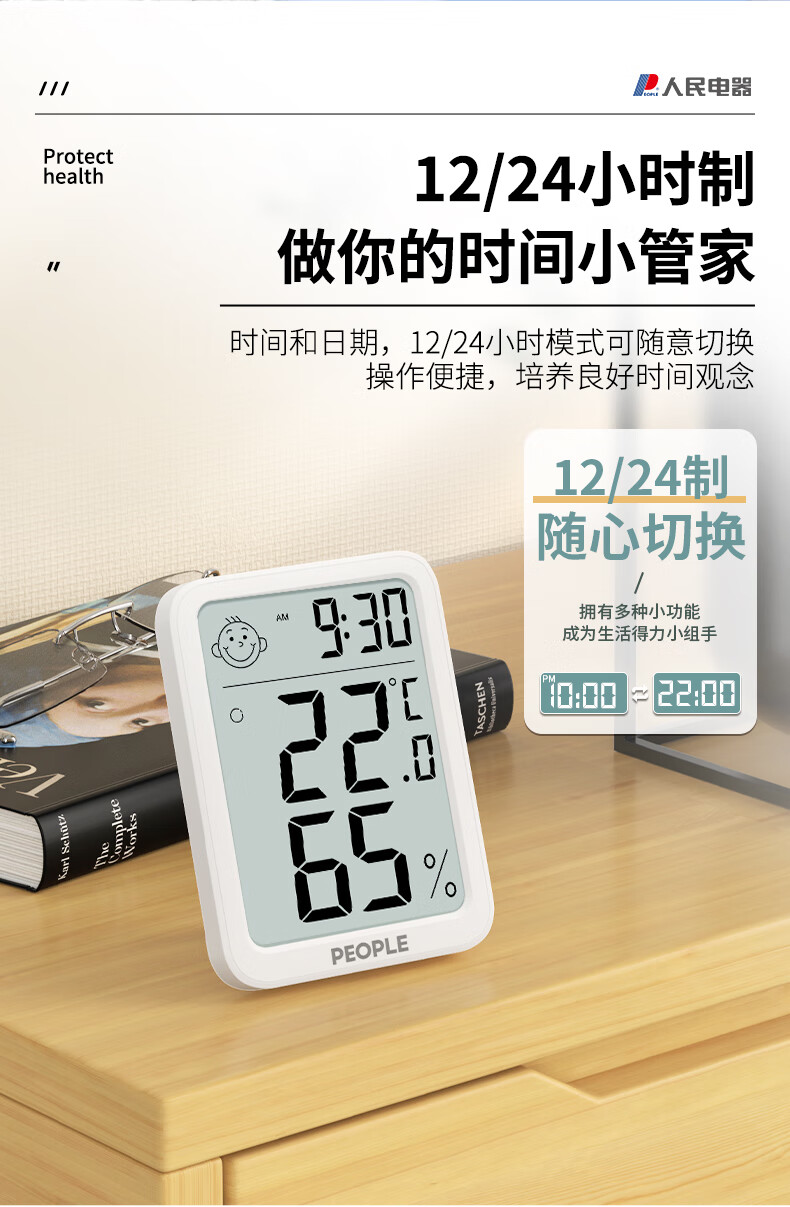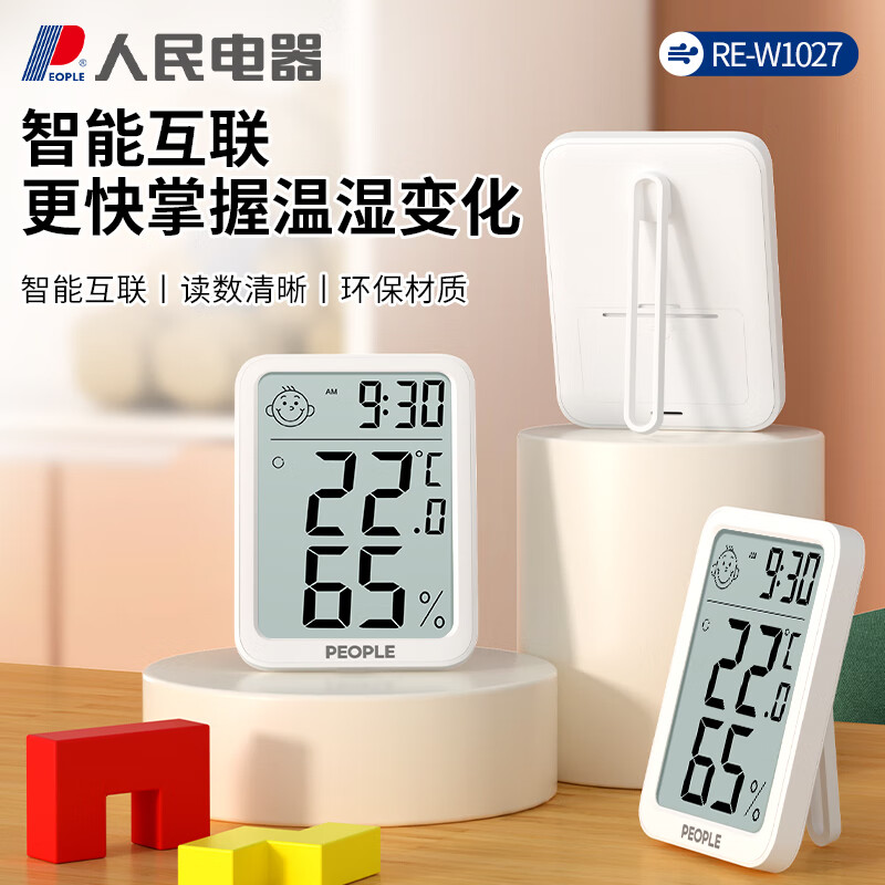 生活日用  > 日用杂货  > 温湿度计  >  人民电器  >  人民家用室内温湿度计办公室温婴儿房高精度智能检测温度计 RE-W1027 RE-W1027/个