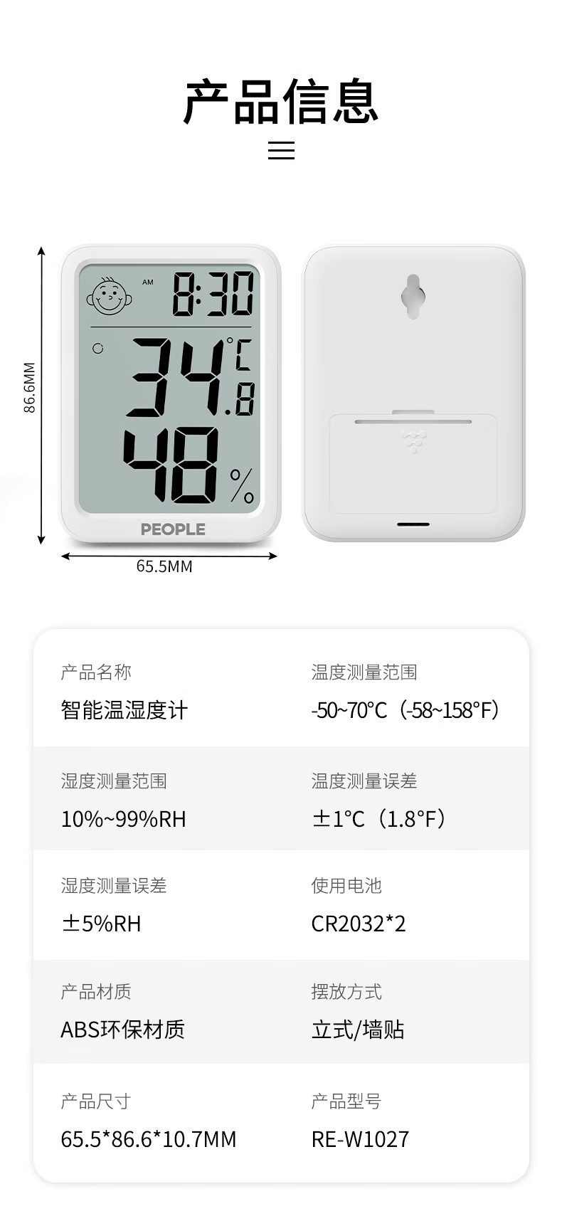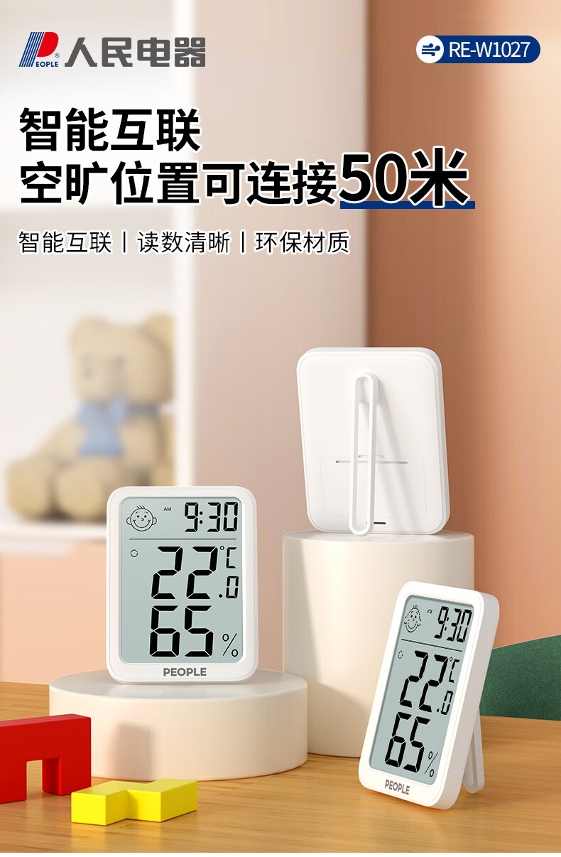 商品名称: 人民家用室内温湿度计办公室温婴儿房高精度智能检测温度计 RE-W1027 RE-W1027/个