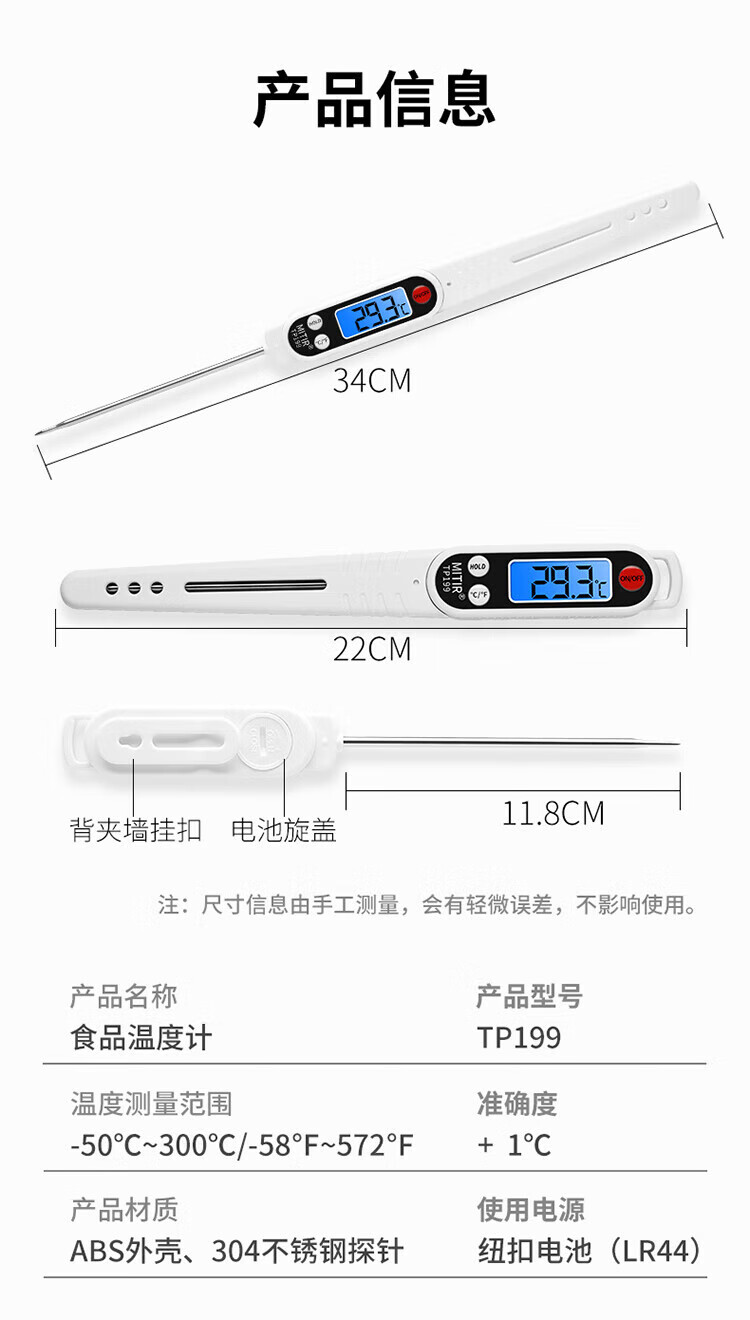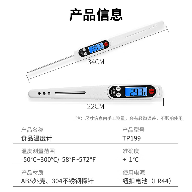 商品名称: MITIR家用食品温度计厨房油温计烘焙水温计婴儿洗澡水温奶温计TP199 TP199/个