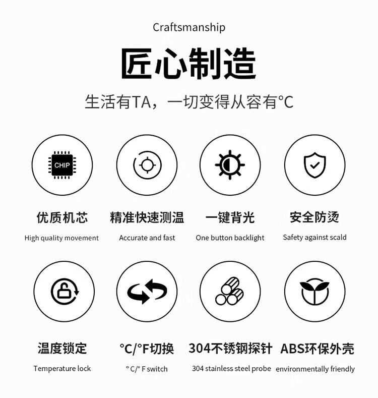 包装清单: 食品温度计×1个,包装盒×1个,合格证×1张