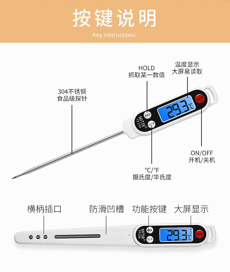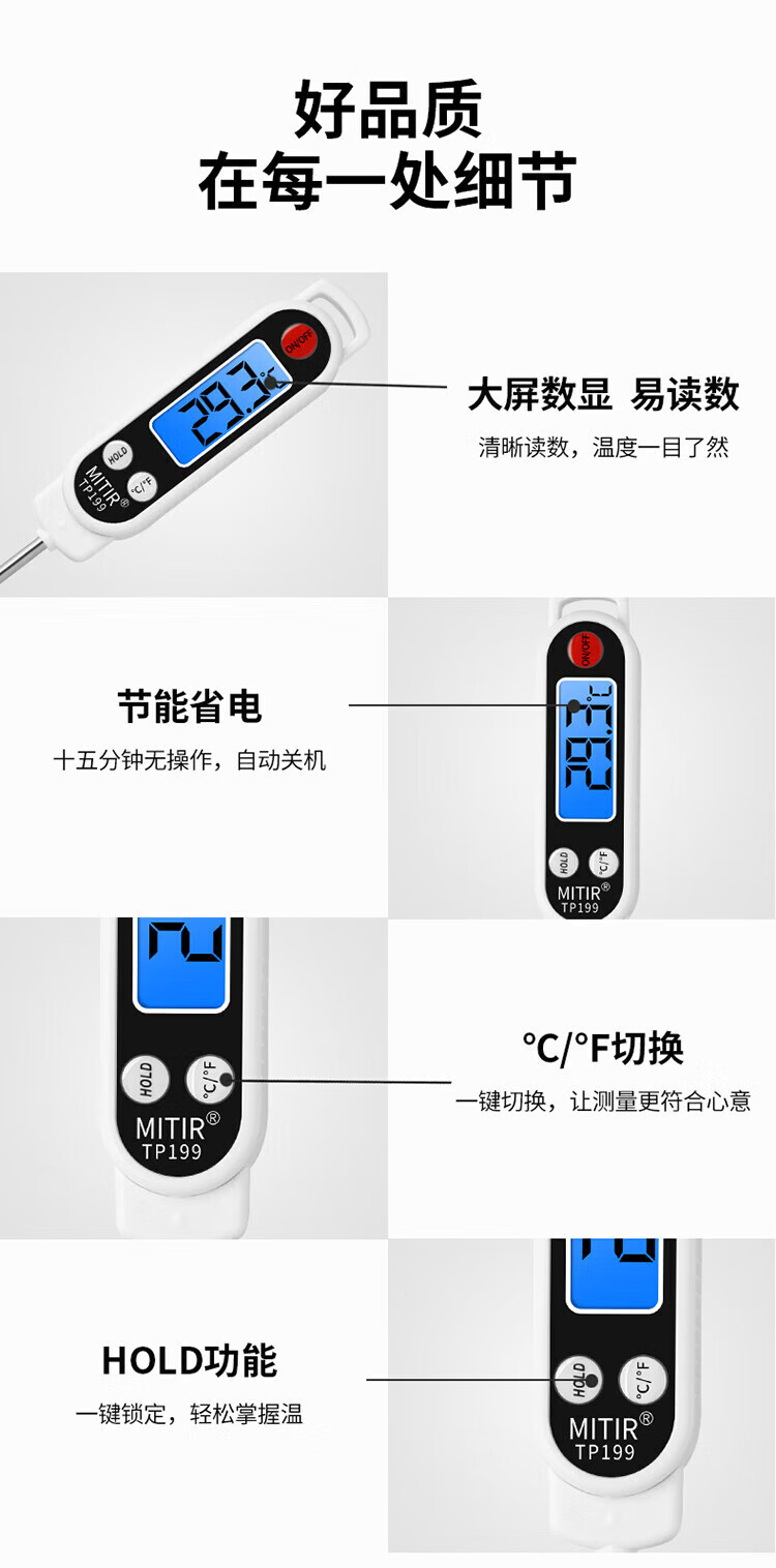 • 商品名称:MITIR家用食品温度计厨房油温计烘焙水温计婴儿洗澡水温奶温计TP199 TP199/个