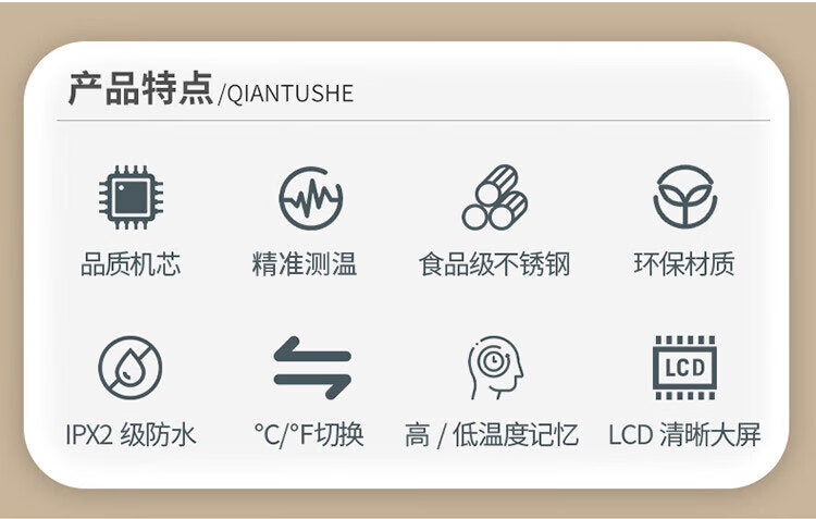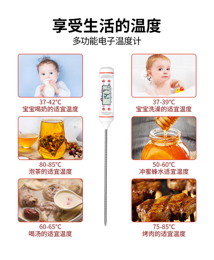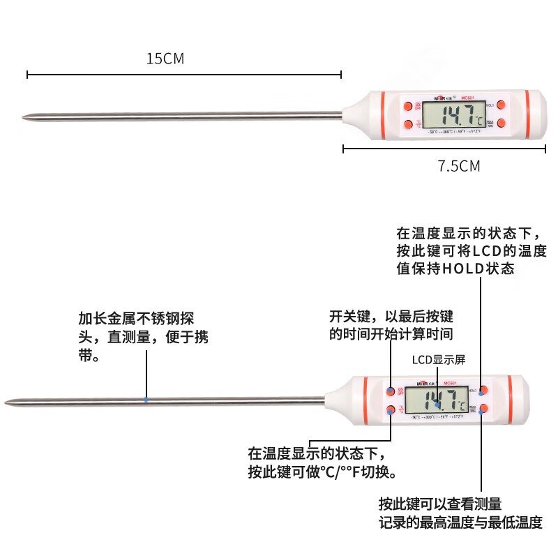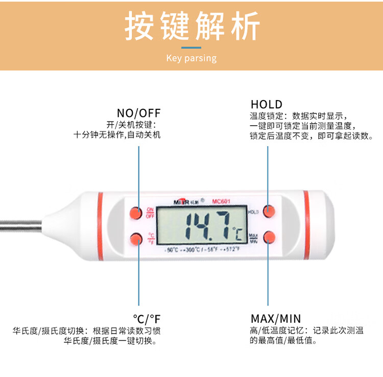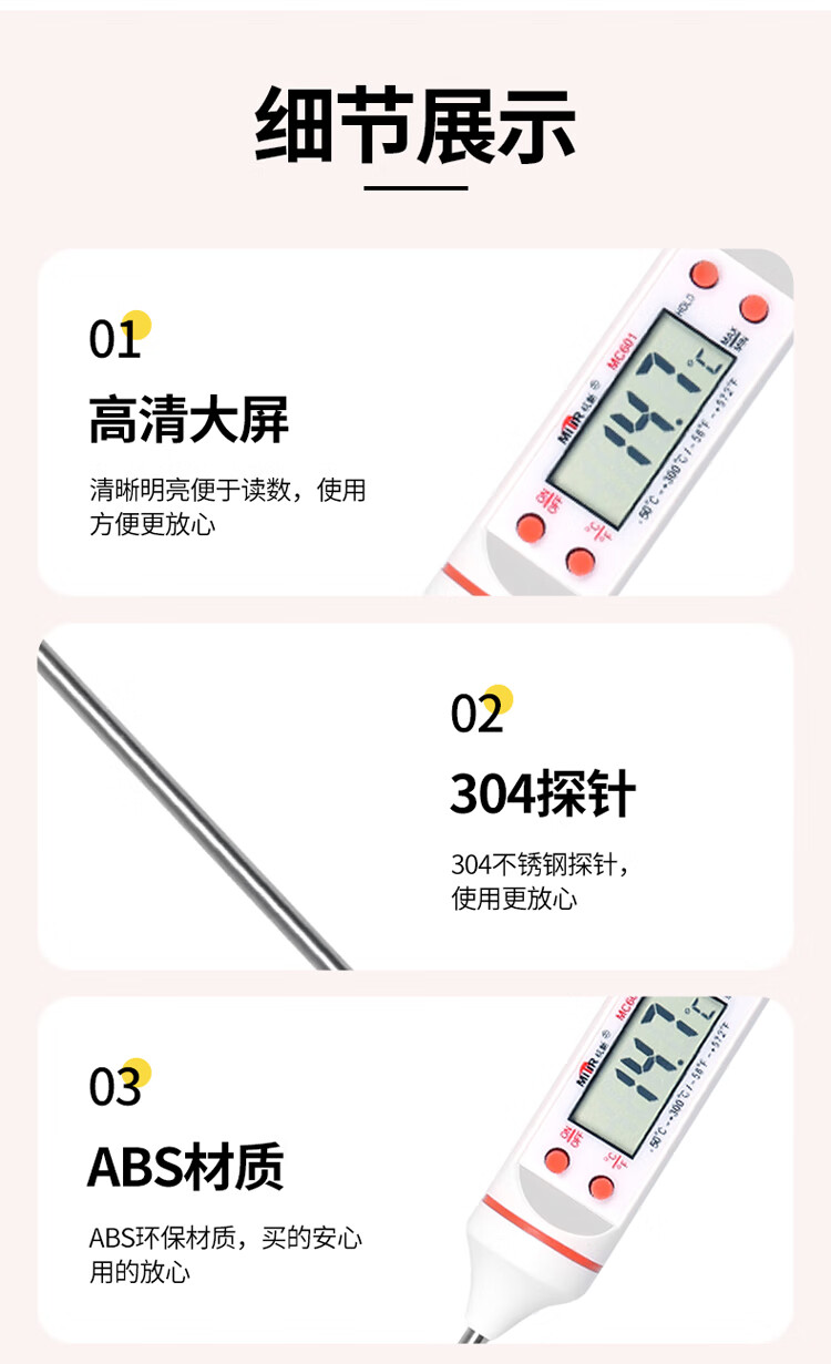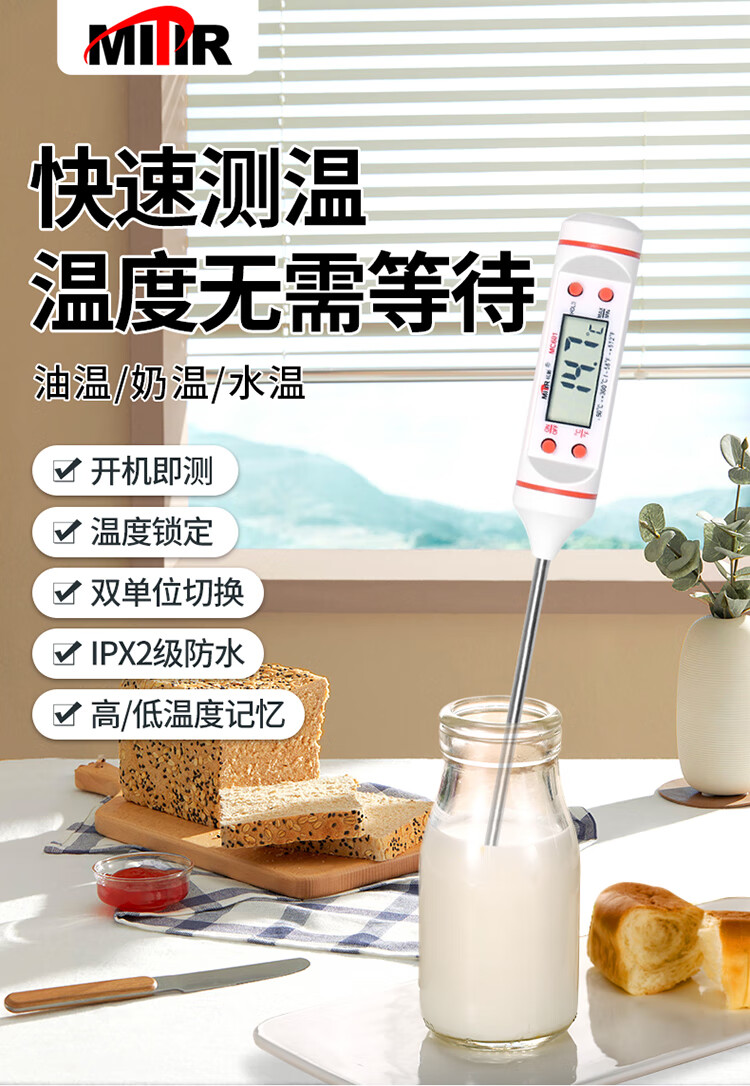 • 商品名称:MITIR食品温度计便捷式厨房测油温奶温水温食物烘焙测温计MC601白色 MC601白色/个