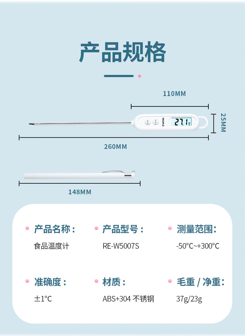 商品名称: 人民家用室内食品温湿度计室内油温婴儿测奶温水温计温度计RE-W5007S RE-W5007S/个