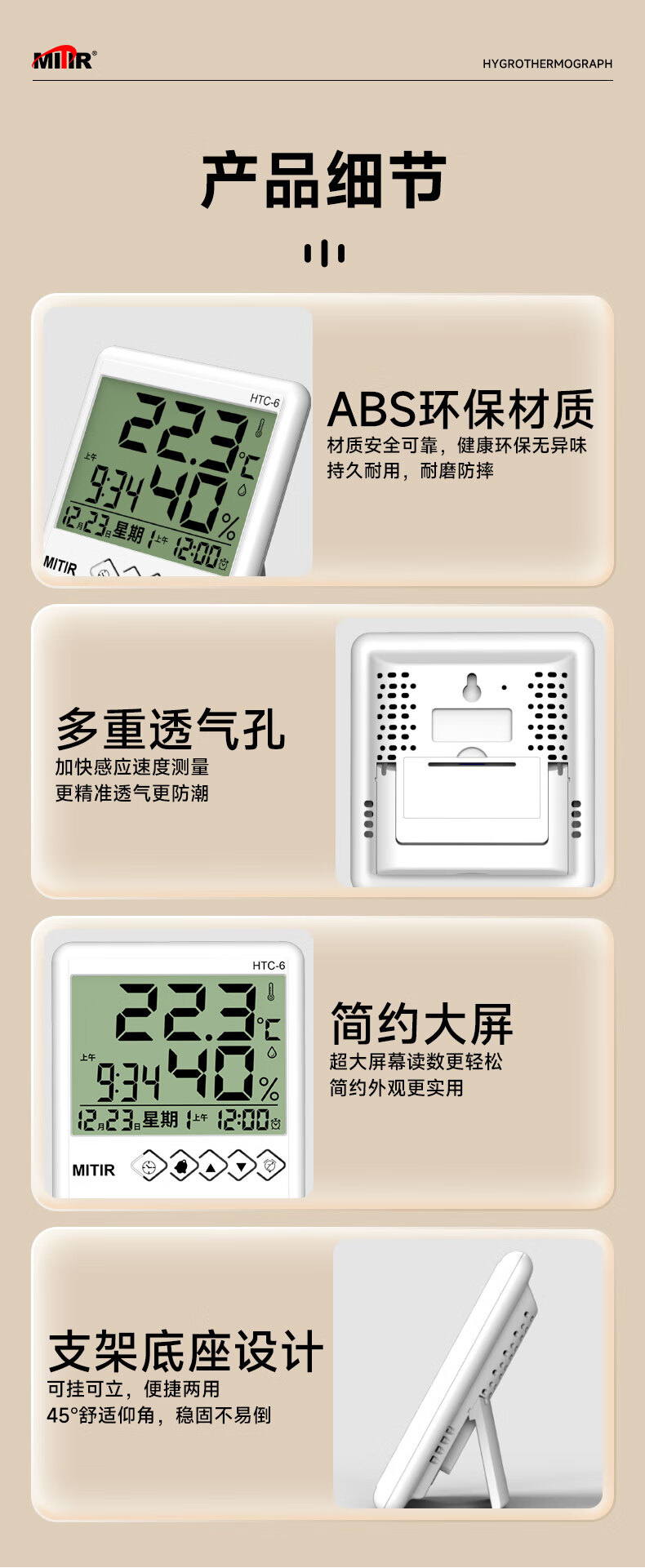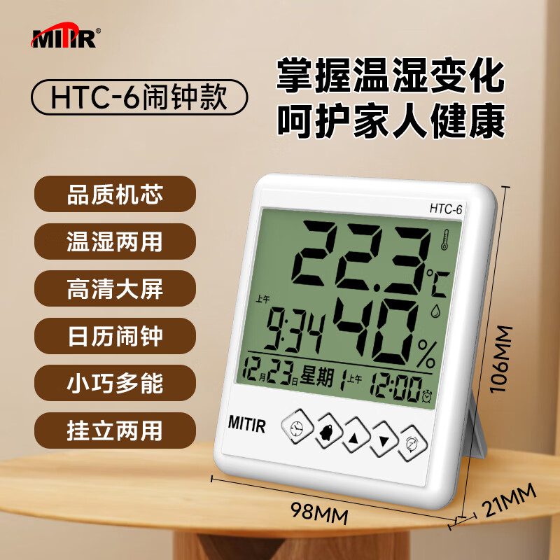 商品名称: MITIR温度计室内家用温湿度计电子闹钟温度表简约室温计HTC-6 HTC-6经典款/个