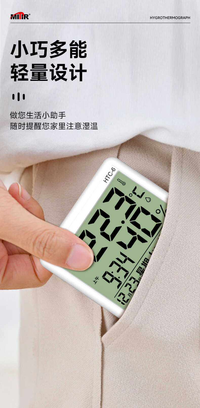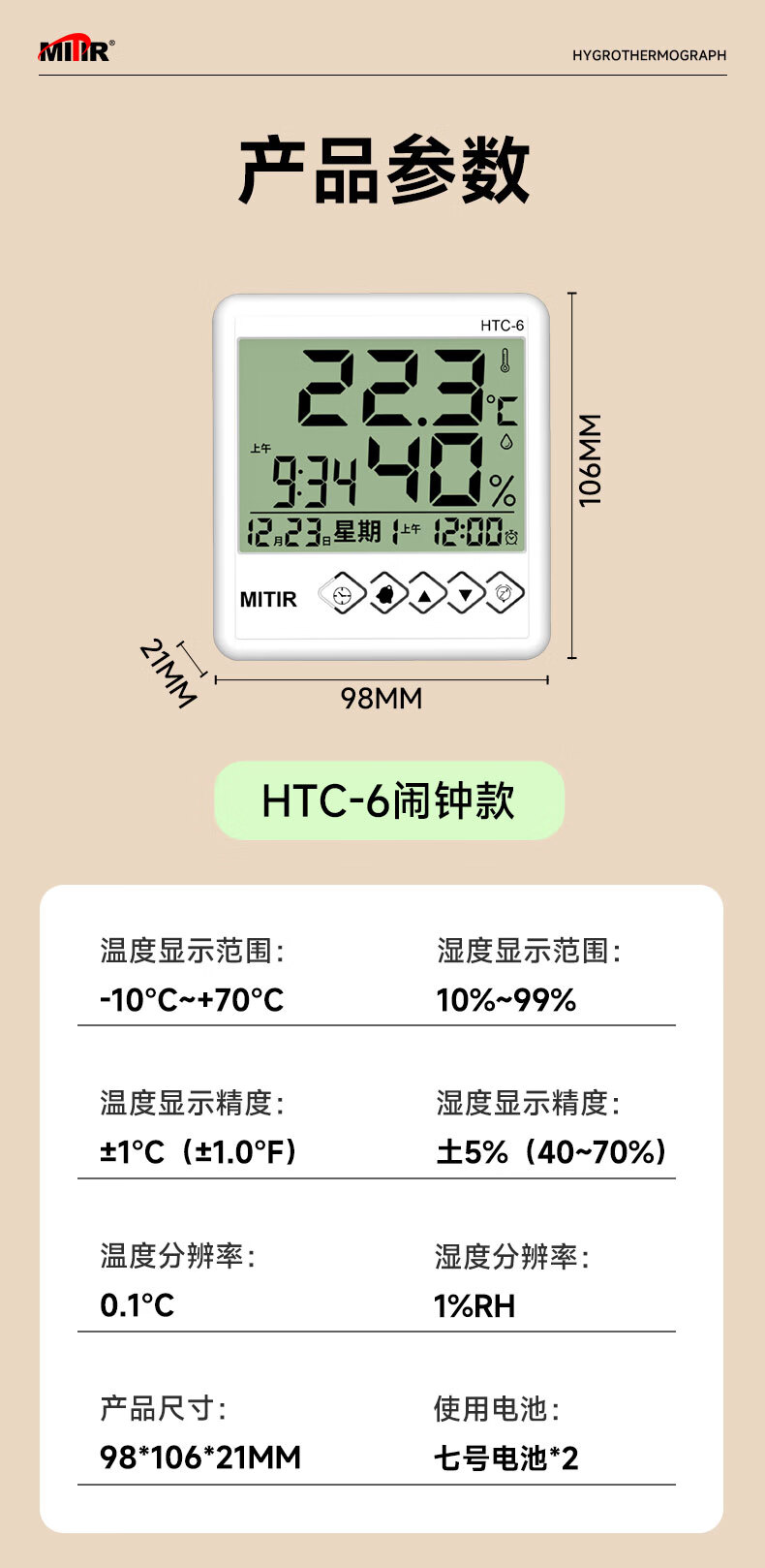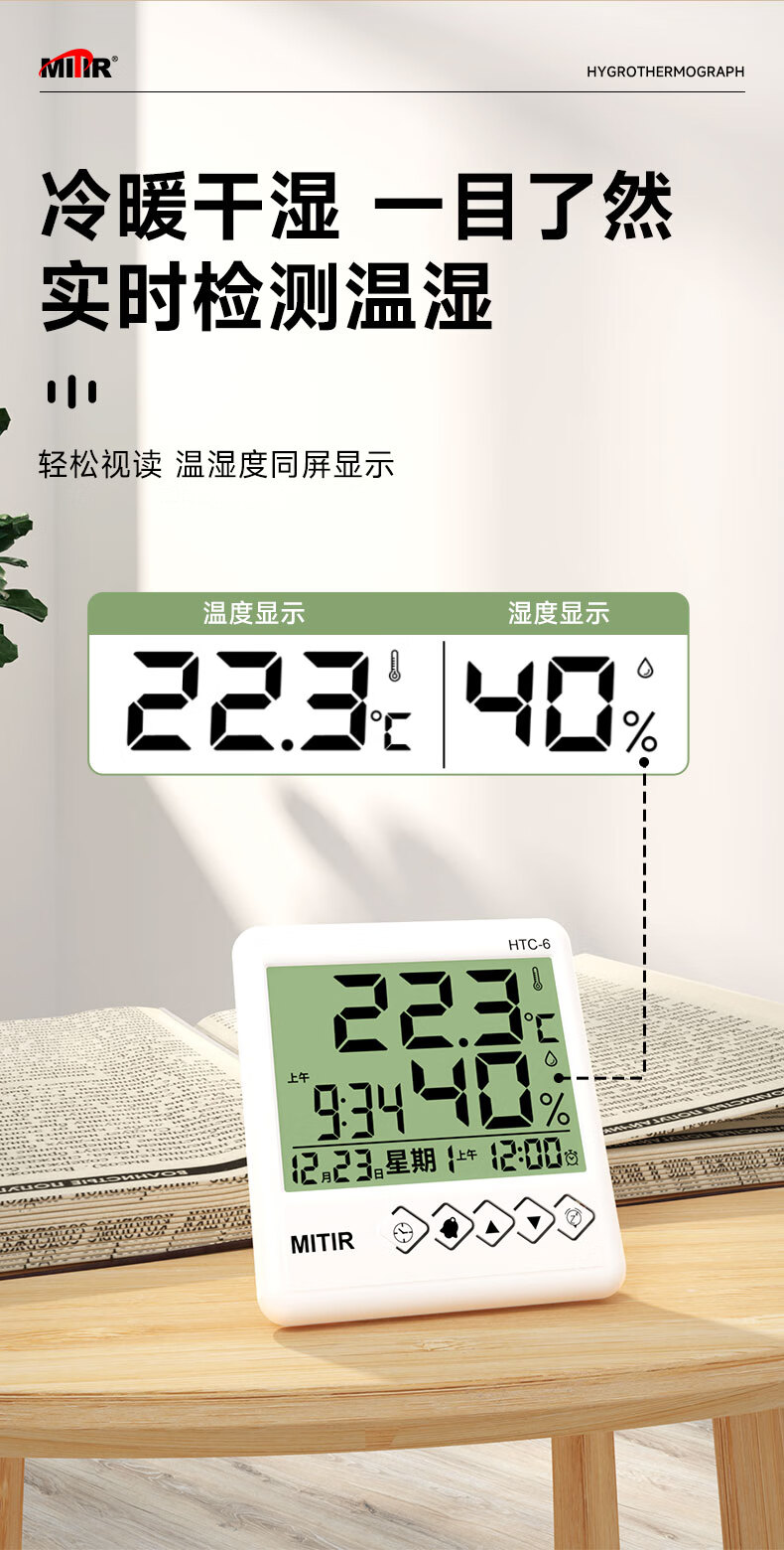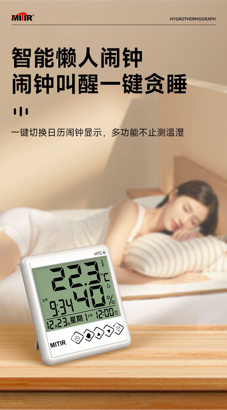 • 商品名称:MITIR温度计室内家用温湿度计电子闹钟温度表简约室温计HTC-6 HTC-6经典款/个