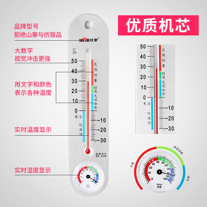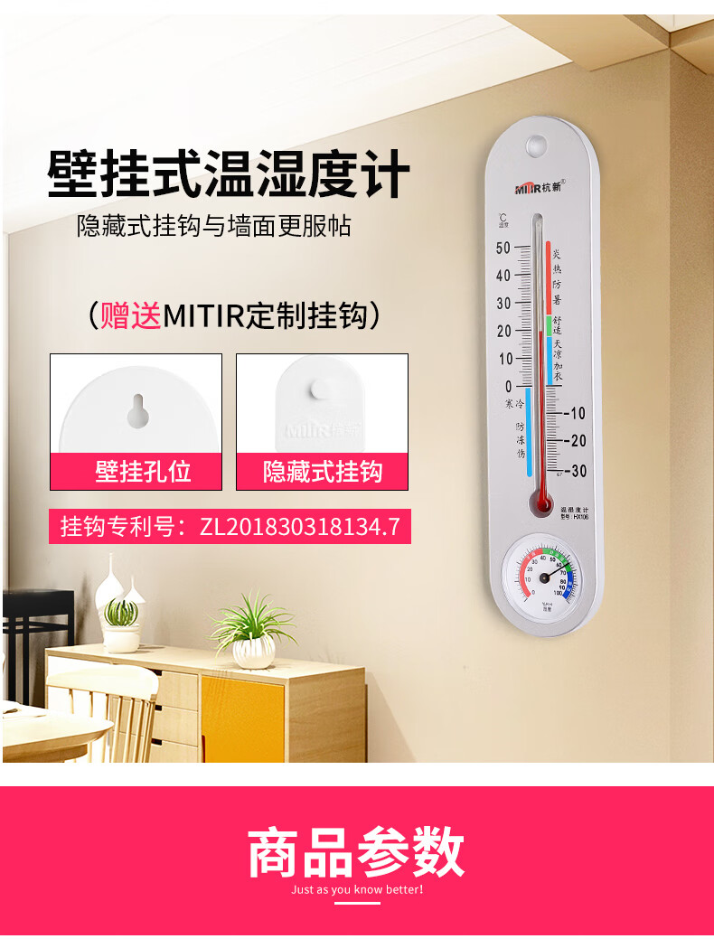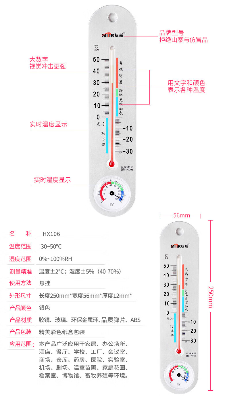 商品名称: MITIR 温度计室内高精度大棚温湿度计壁挂式家用婴儿房温度表HX106 HX106/个