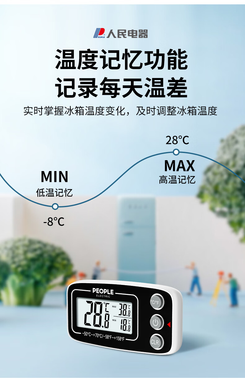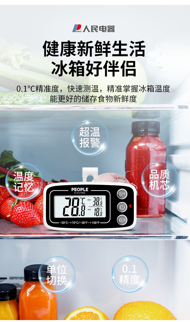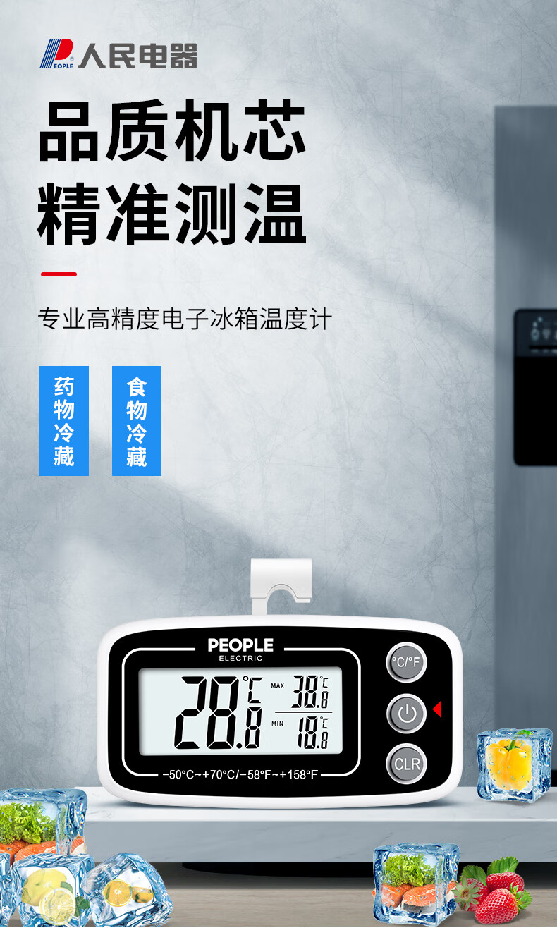 生活日用  > 日用杂货  > 温湿度计  >  人民电器  >  人民家用室内冰箱超市冰柜温湿度计冷冻库冷藏柜药柜保温箱温度计1009 W-1009/个