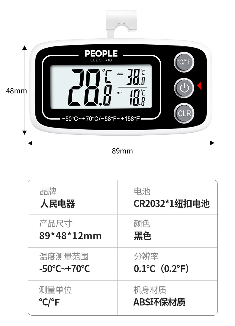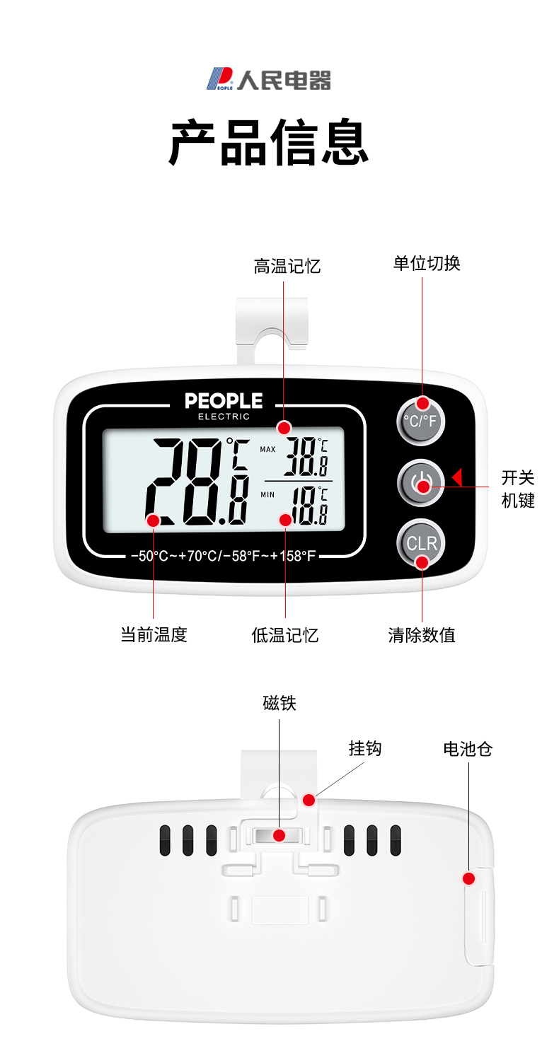 商品名称: 人民家用室内冰箱超市冰柜温湿度计冷冻库冷藏柜药柜保温箱温度计1009 W-1009/个