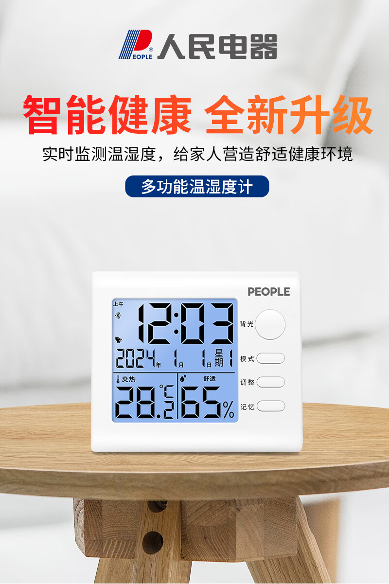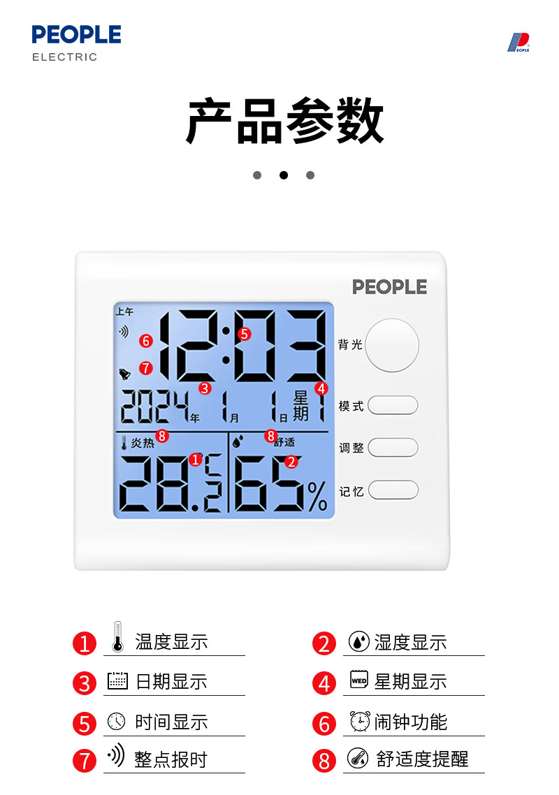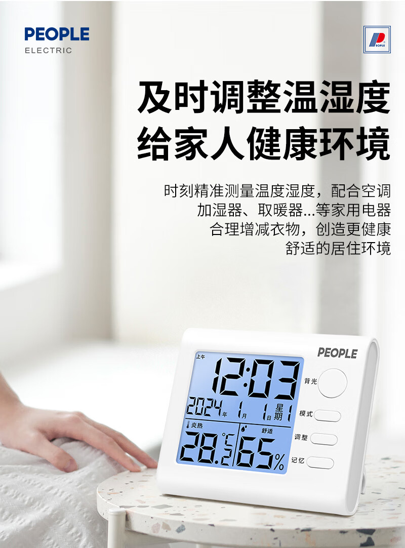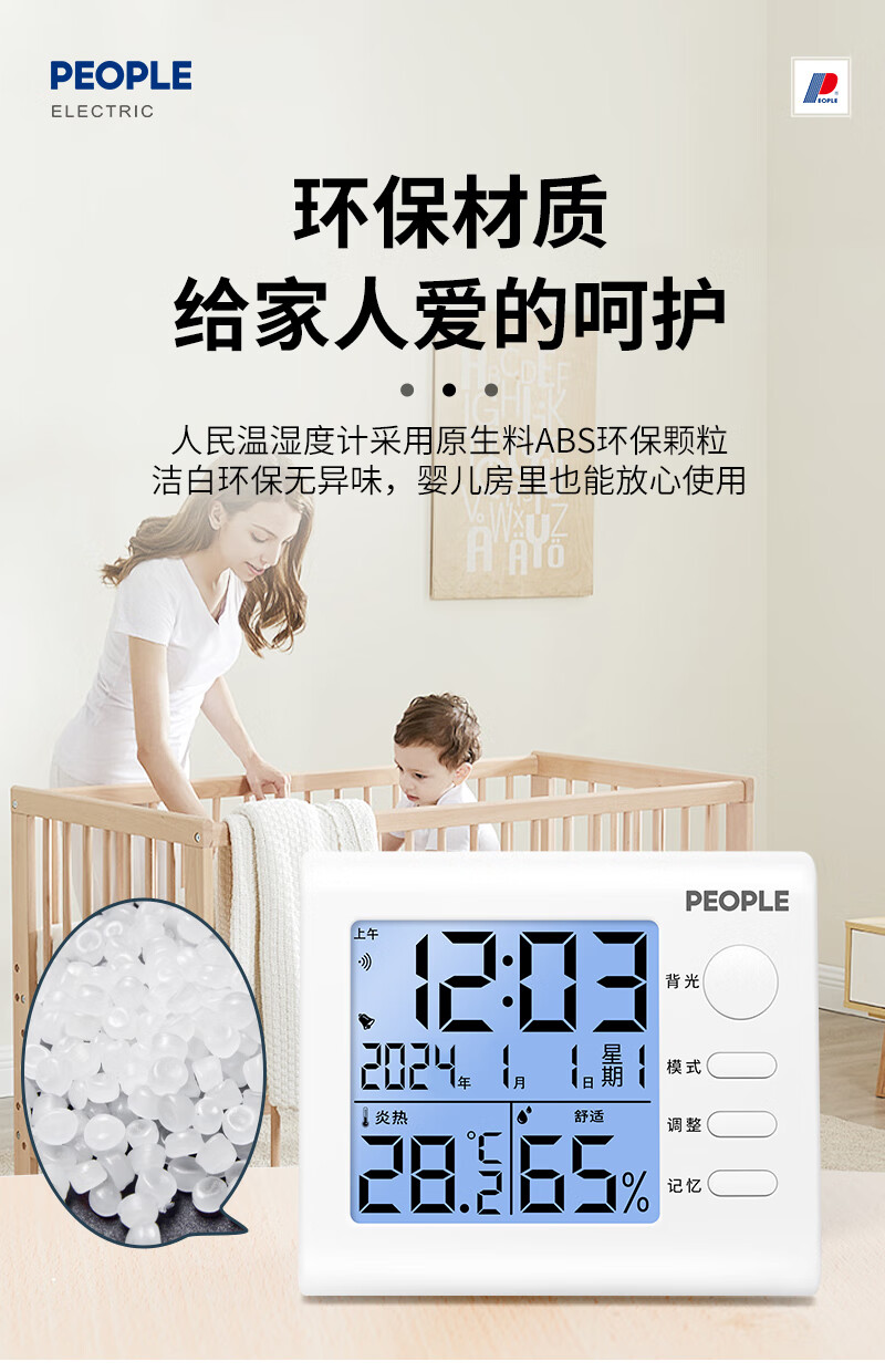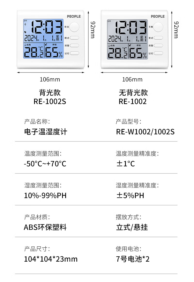 商品名称: 人民家用室内温湿度计室内婴儿房高精度背光电子温度计RE-W1002S RE-W1002S/个