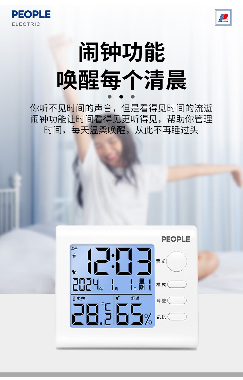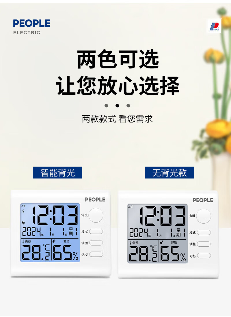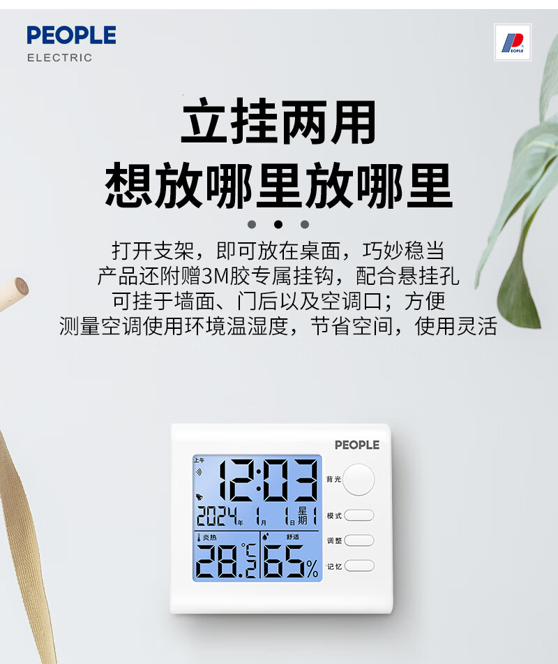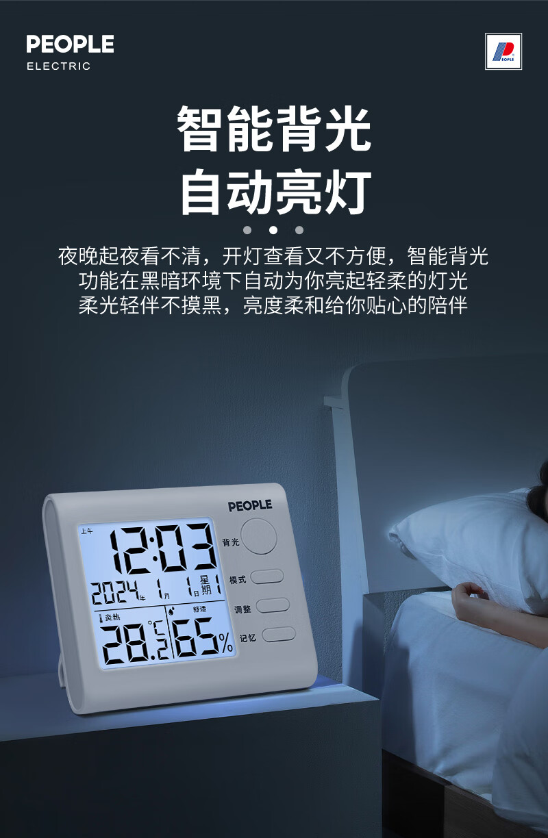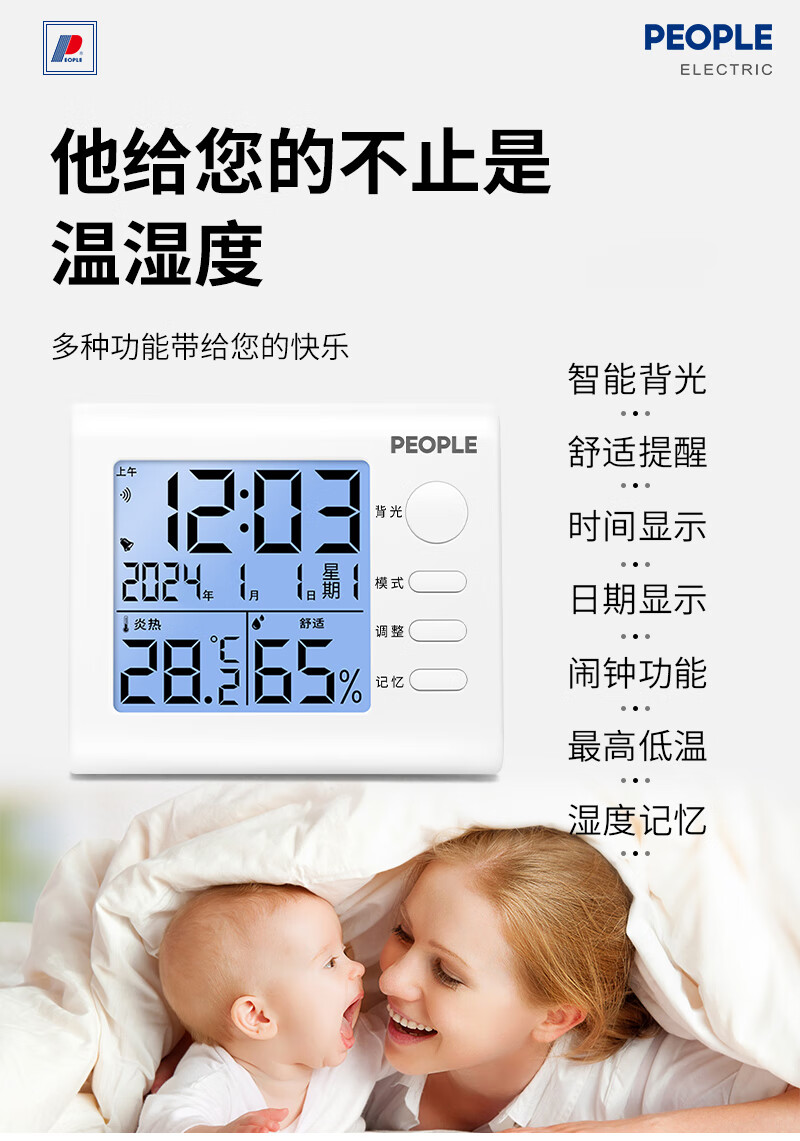 商品名称: 人民家用室内温湿度计室内婴儿房高精度背光电子温度计RE-W1002S RE-W1002S/个