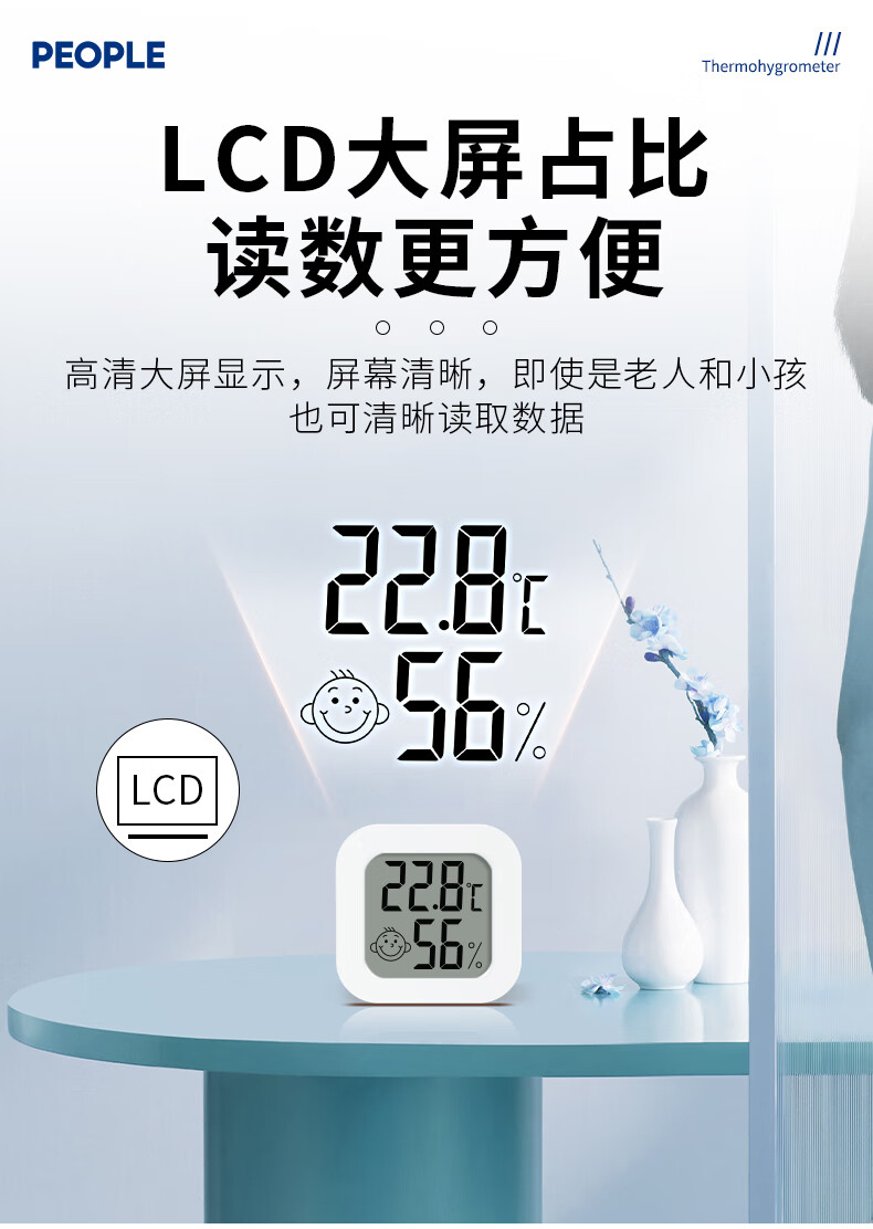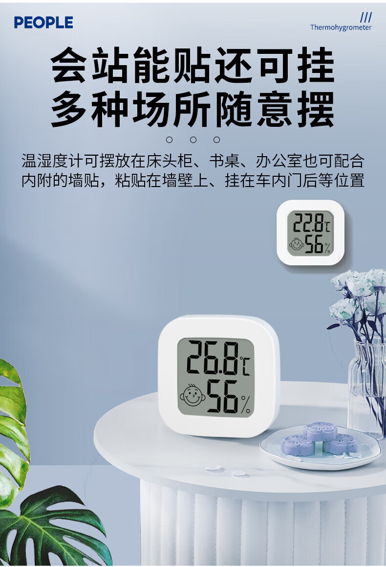 • 商品名称:人民家用室内温湿度计室内婴儿房高精度精致小巧便携温度计RE-W1012 RE-W1012/个