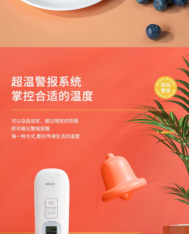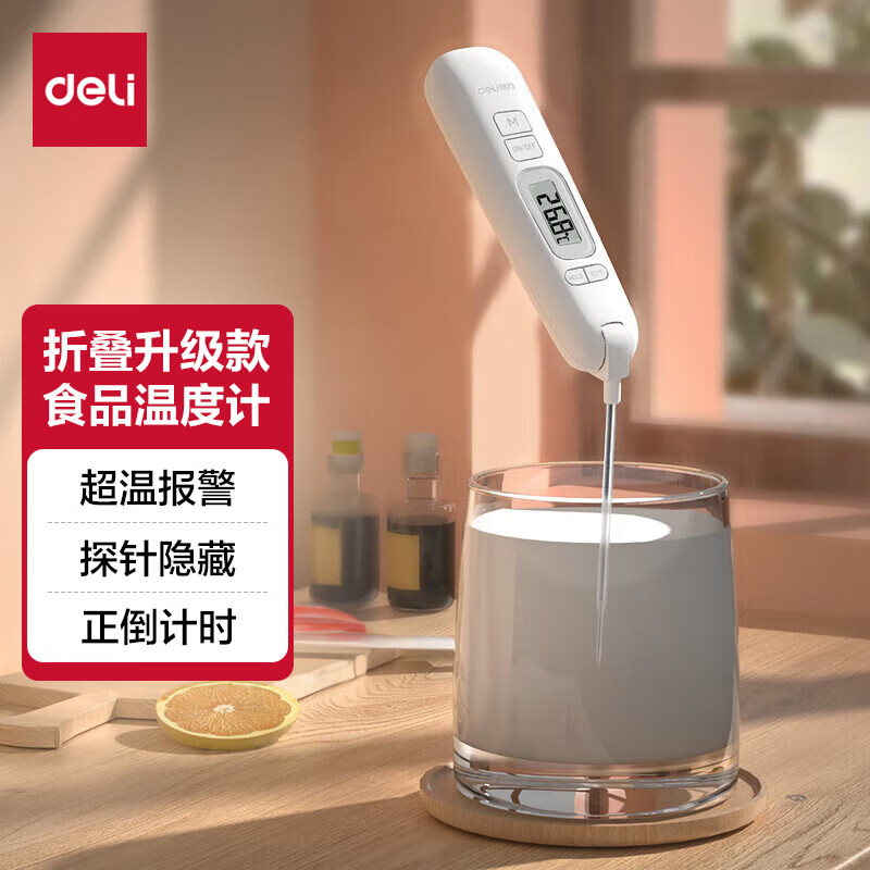 生活日用  > 日用杂货  > 温湿度计  >  得力/deli  >  得力(deli)可折叠探针式 家用水温计宝宝奶温计 电子高精度温度计 白色8899 8899/只