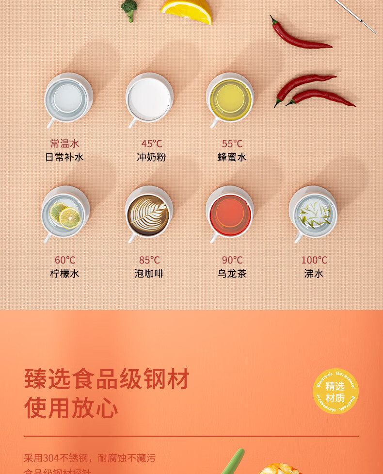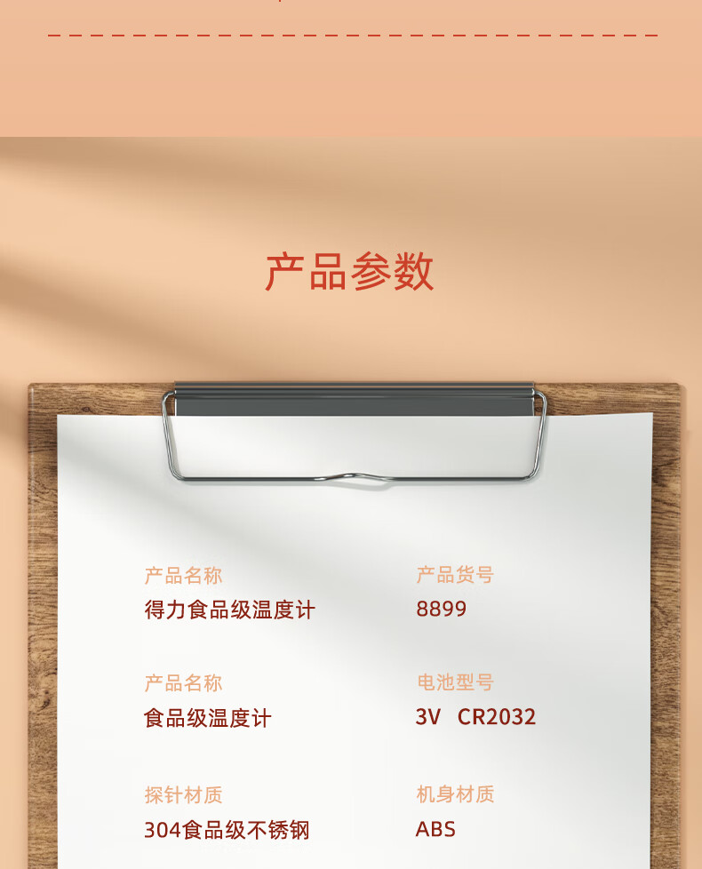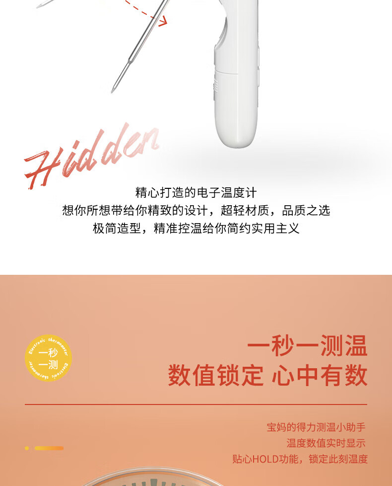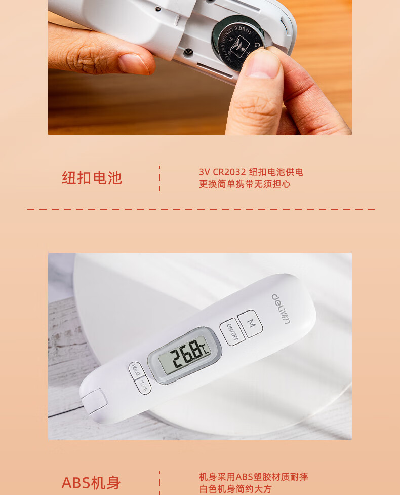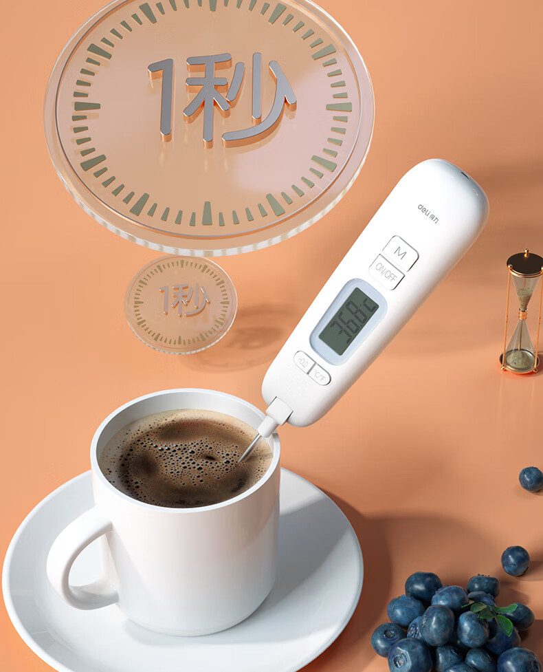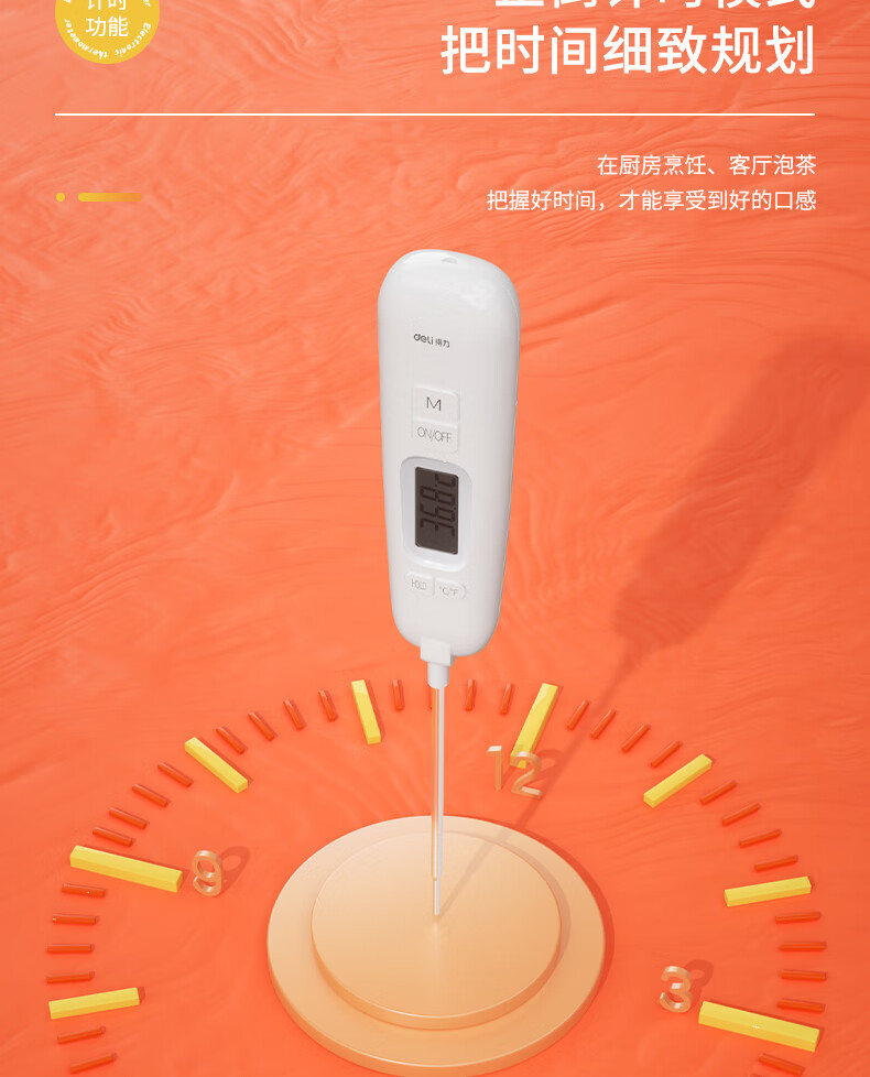 • 商品名称:得力(deli)可折叠探针式 家用水温计宝宝奶温计 电子高精度温度计 白色8899 8899/只