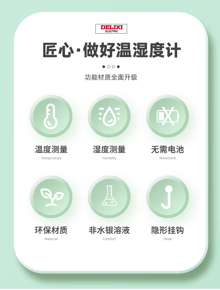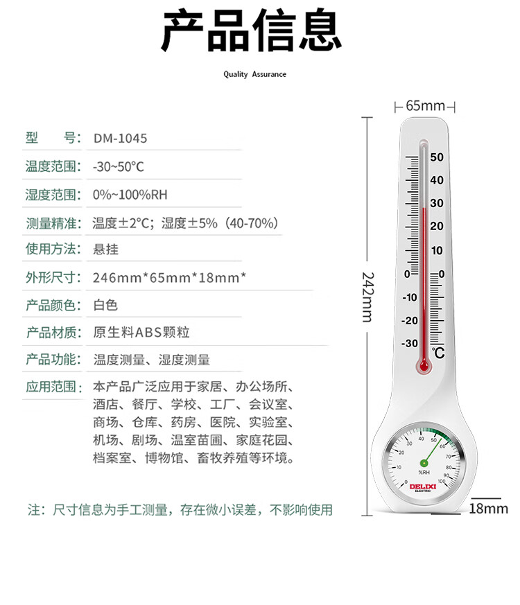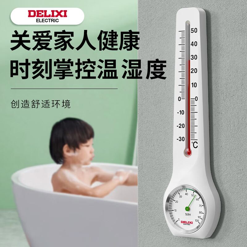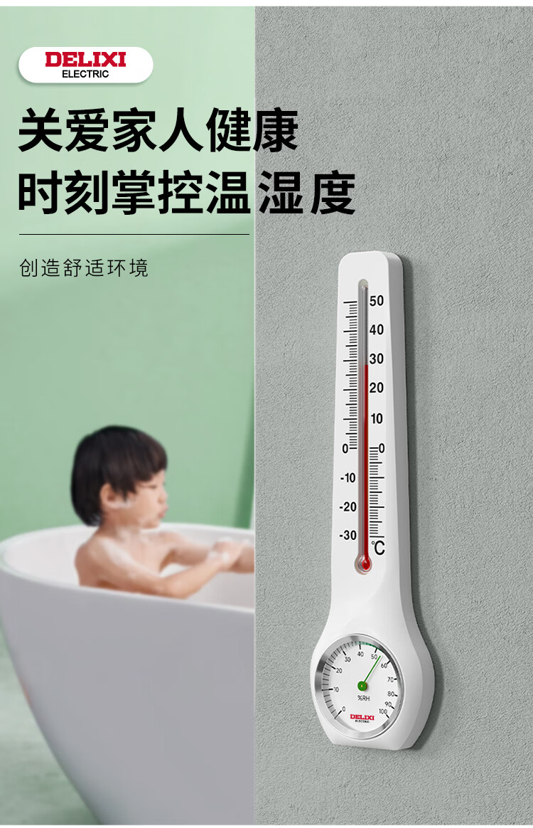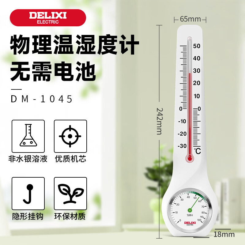 • 商品名称:德力西电气(DELIXI ELECTRIC)温度计室内车载办公家用浴室婴儿房数显高精度壁挂式温湿度计 DM-1045/个