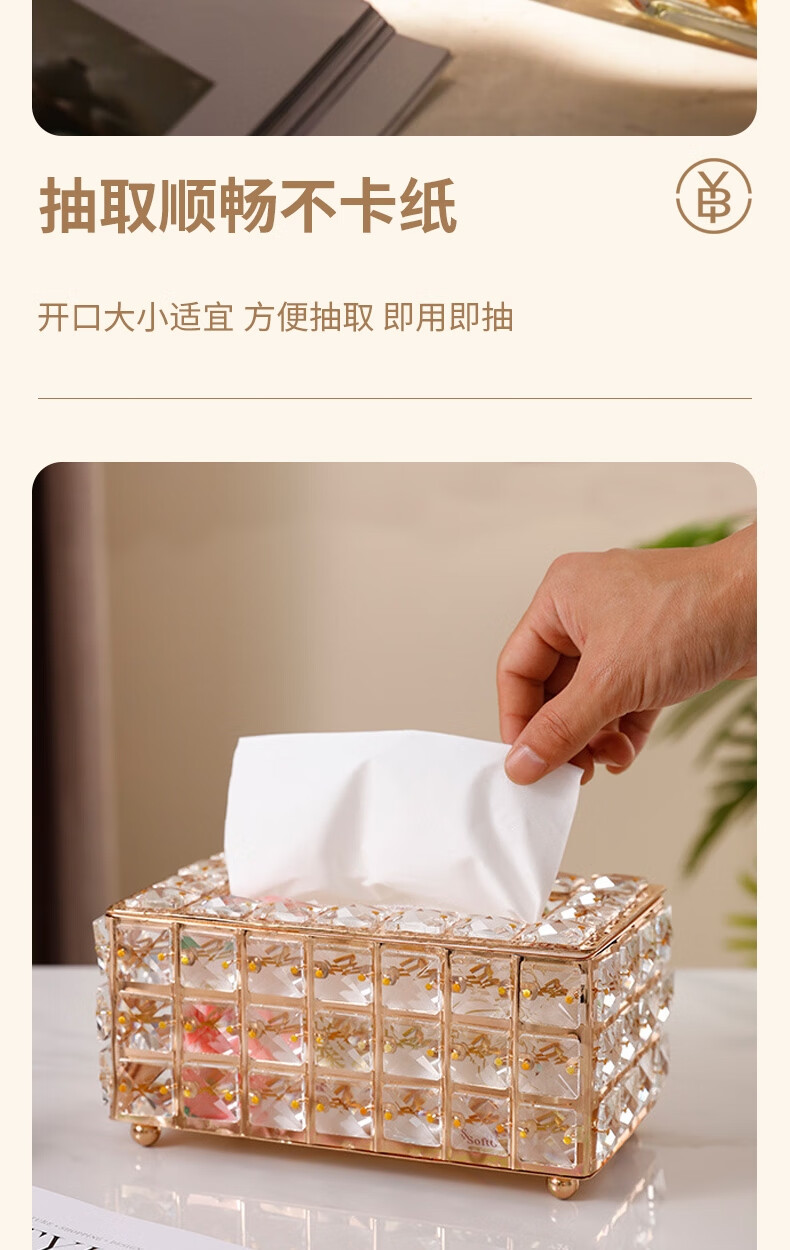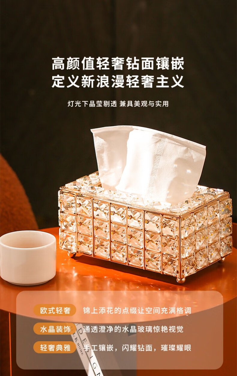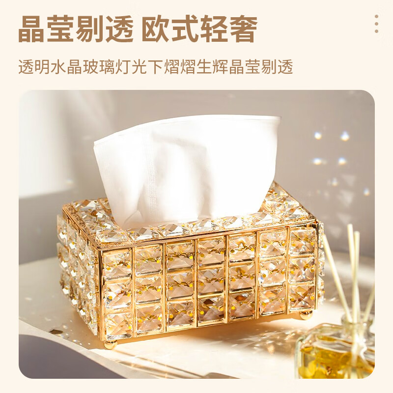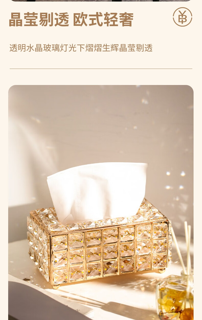 • 商品名称:秉优水晶纸巾盒 创意轻奢高档客厅现代简约酒店茶几欧式网红抽纸盒 秉优81442/个