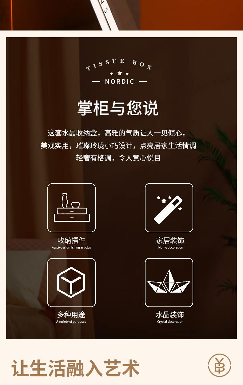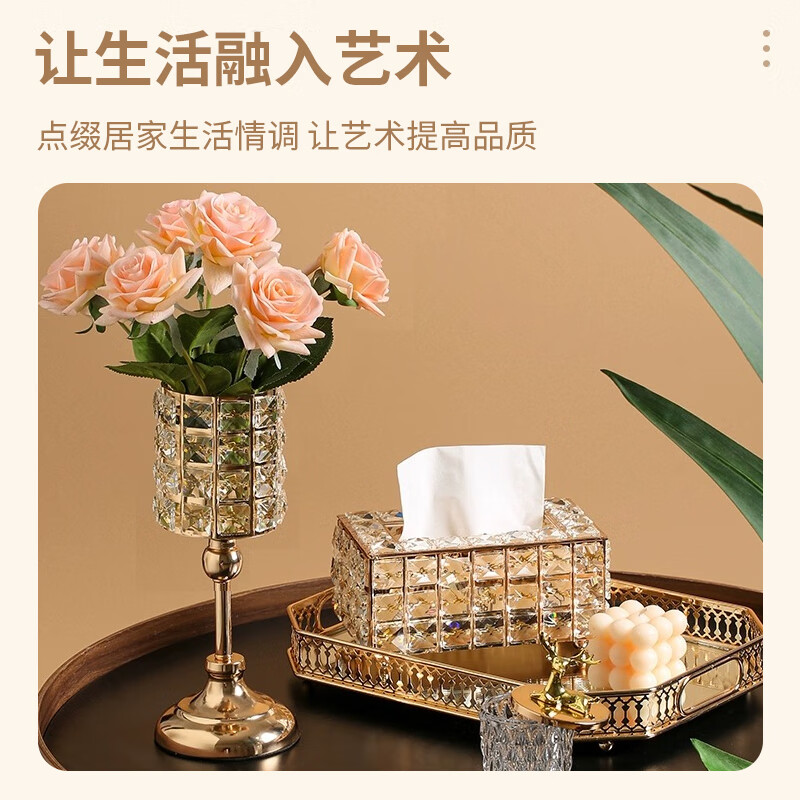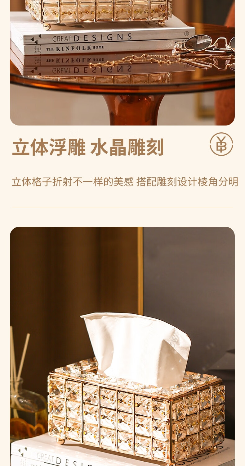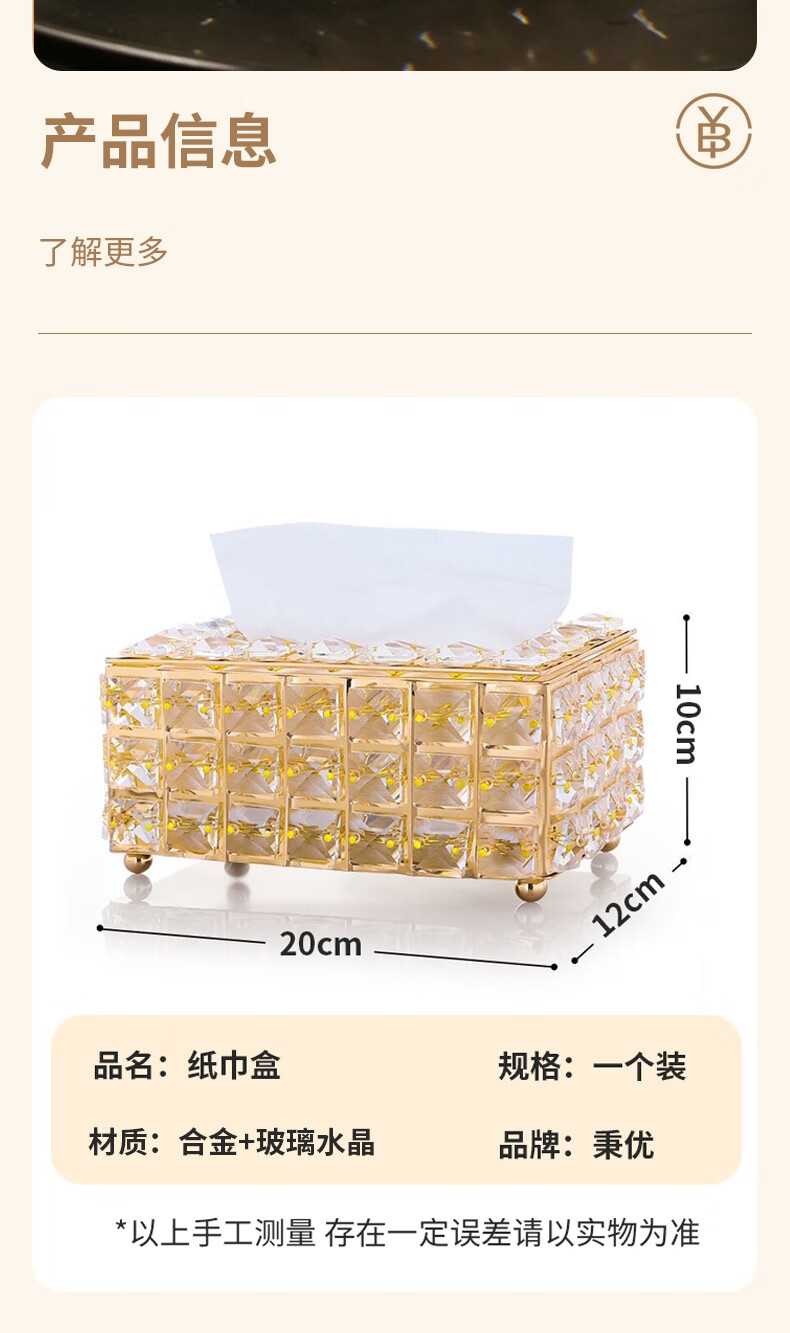 • 商品名称:秉优水晶纸巾盒 创意轻奢高档客厅现代简约酒店茶几欧式网红抽纸盒 秉优81442/个
