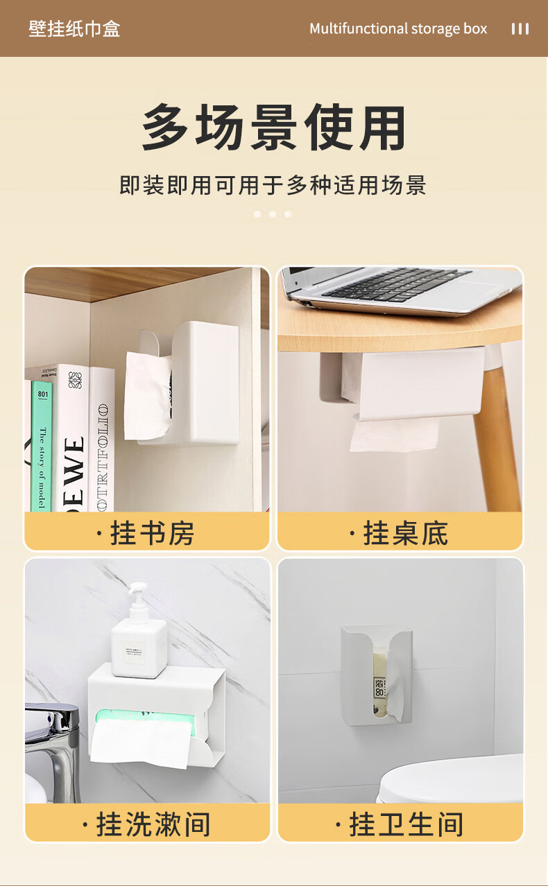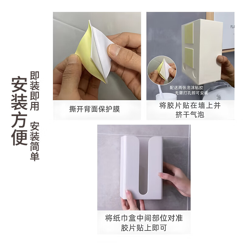 商品名称: 乐兰迪卫生间纸巾盒免打孔厨房抽纸盒餐厅卧室壁挂收纳盒小号 L1166 日杂小件/个
