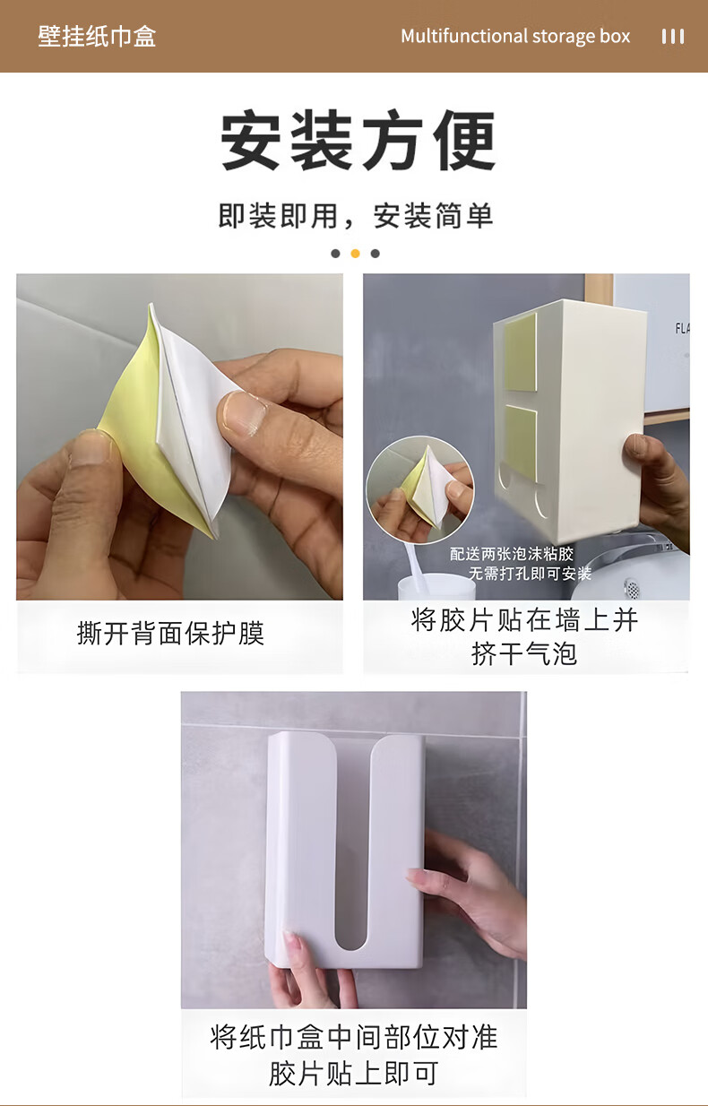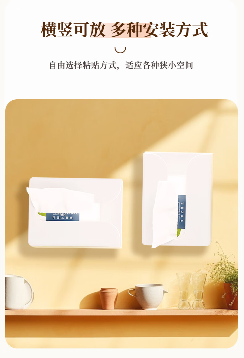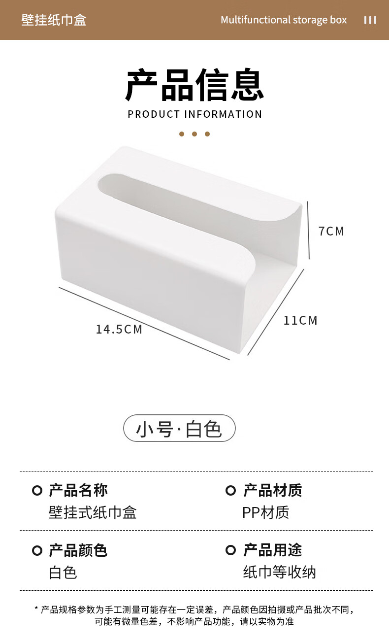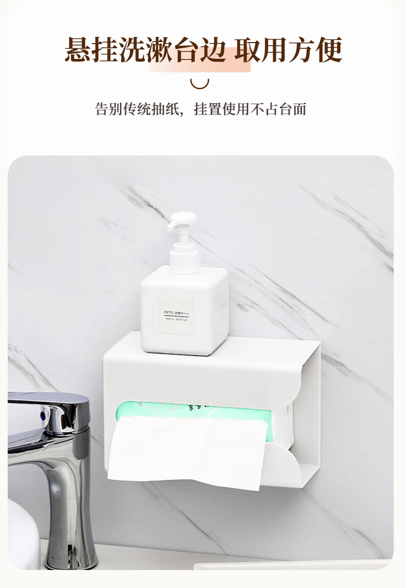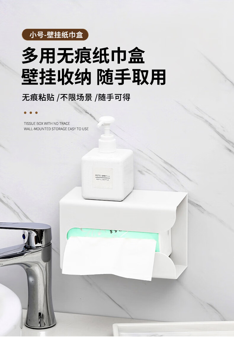 • 商品名称:乐兰迪卫生间纸巾盒免打孔厨房抽纸盒餐厅卧室壁挂收纳盒小号 L1166 日杂小件/个