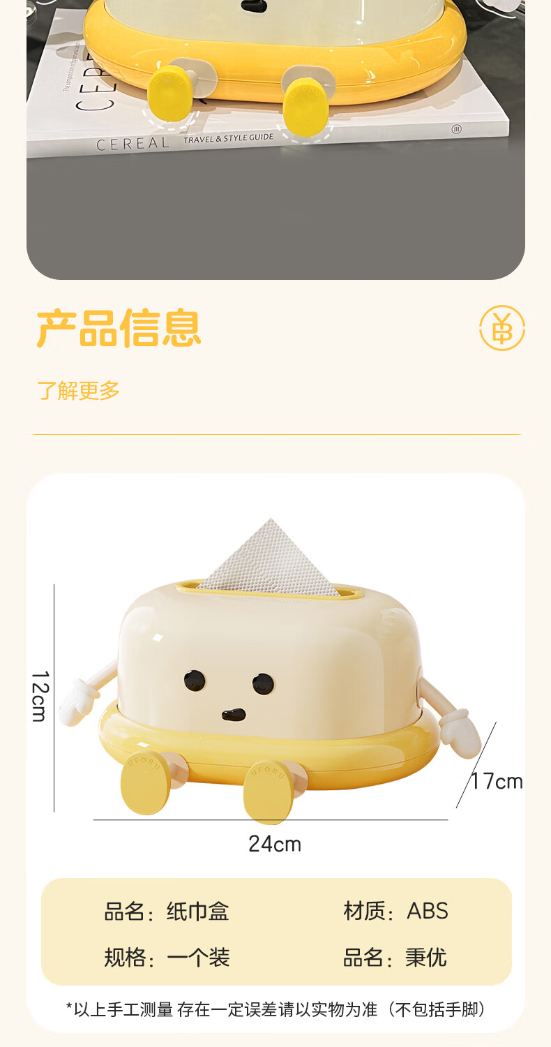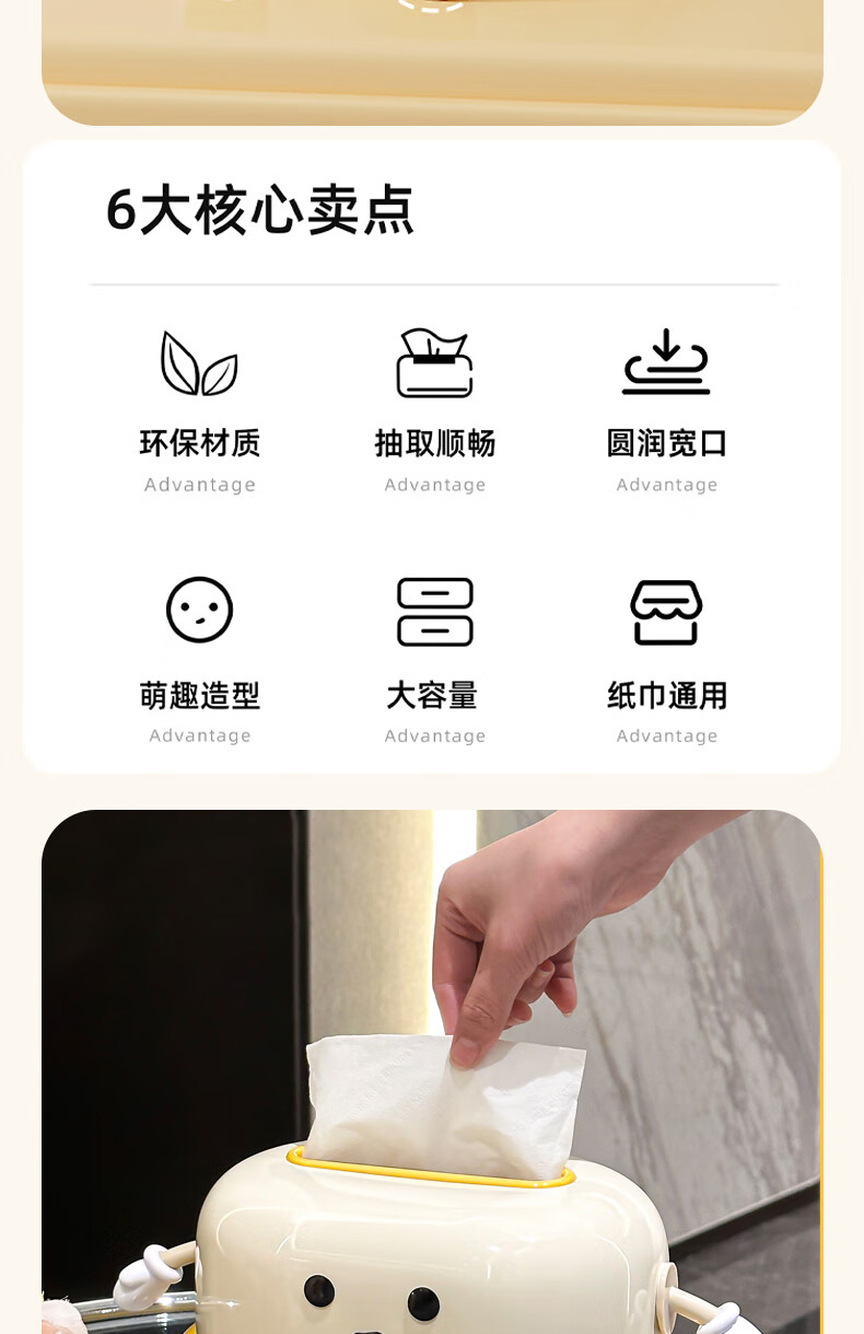 • 商品名称:秉优创意可爱纸巾盒客厅高档轻奢纸抽盒抽纸盒家用摆件餐巾纸盒高级感 秉优81214219/个