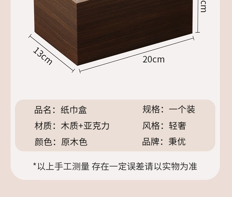 生活日用  > 日用杂货  > 纸巾盒  >  秉优  >  秉优 高档轻奢纸巾盒 简约木质桌面办公室客厅茶几卧室抽纸盒 秉优81442/个
